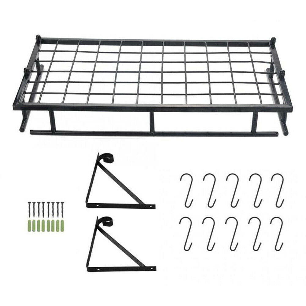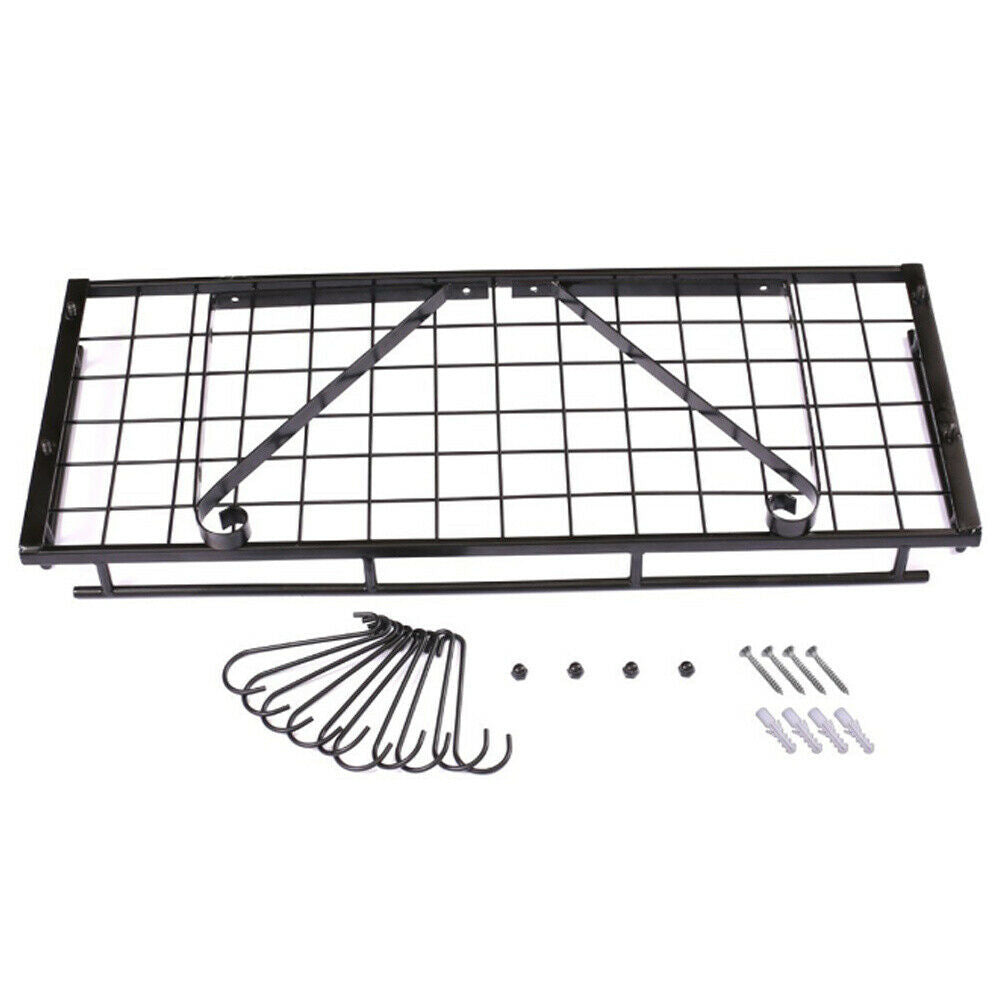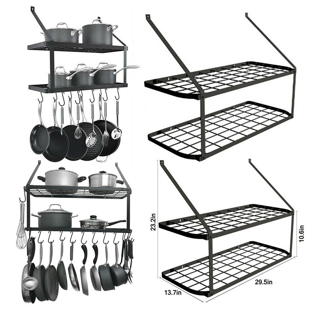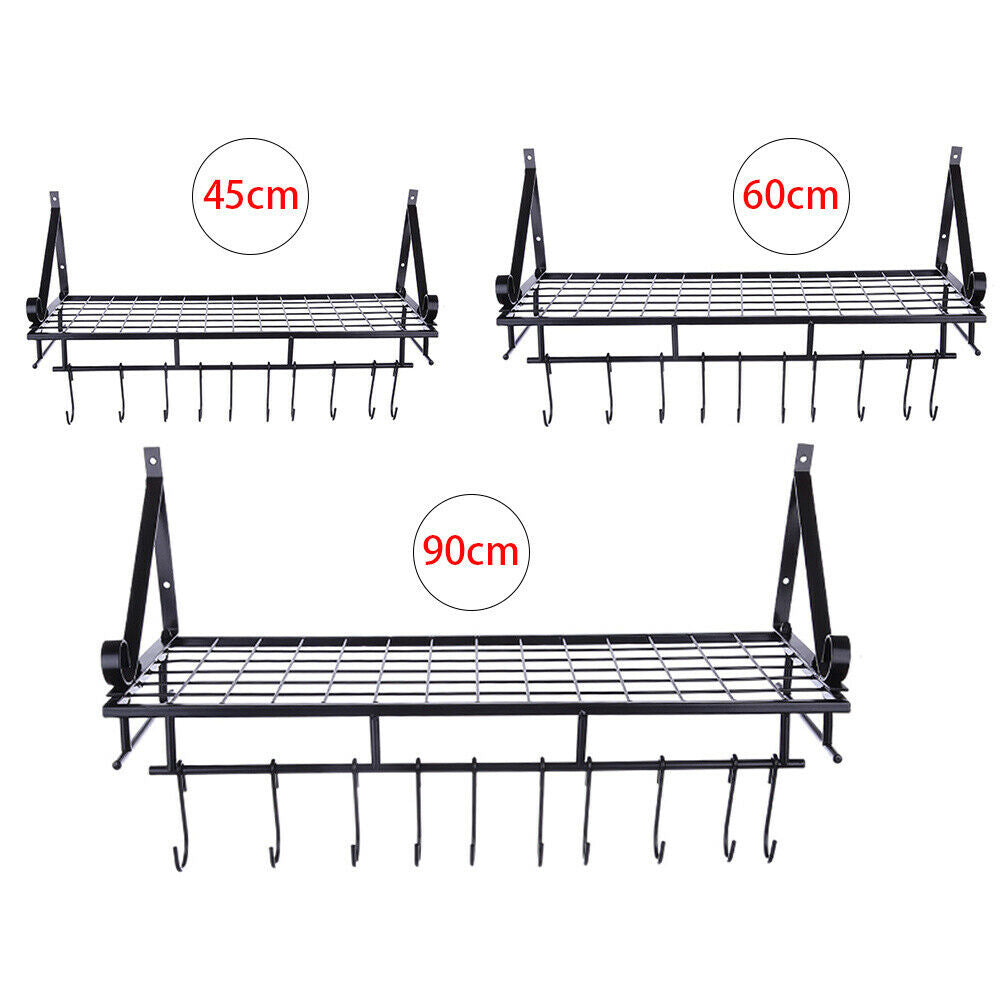 Kitchen Iron Shelf Utensil Hanging Pot Rack Saucepan Pan Organiser+10Hanger Hook