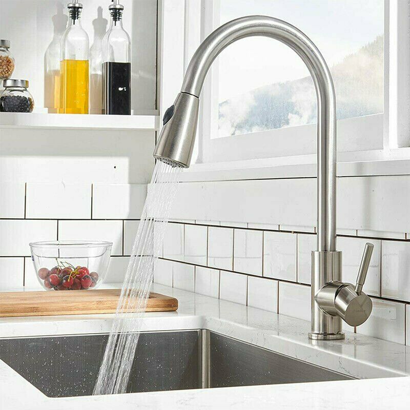 Kitchen Modern Sink Mixer Taps Pull Out Single Lever Chrome Brass Spray Mono Tap