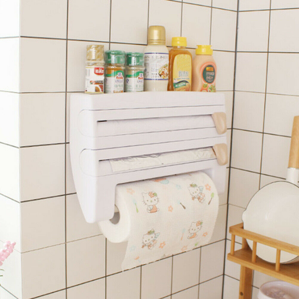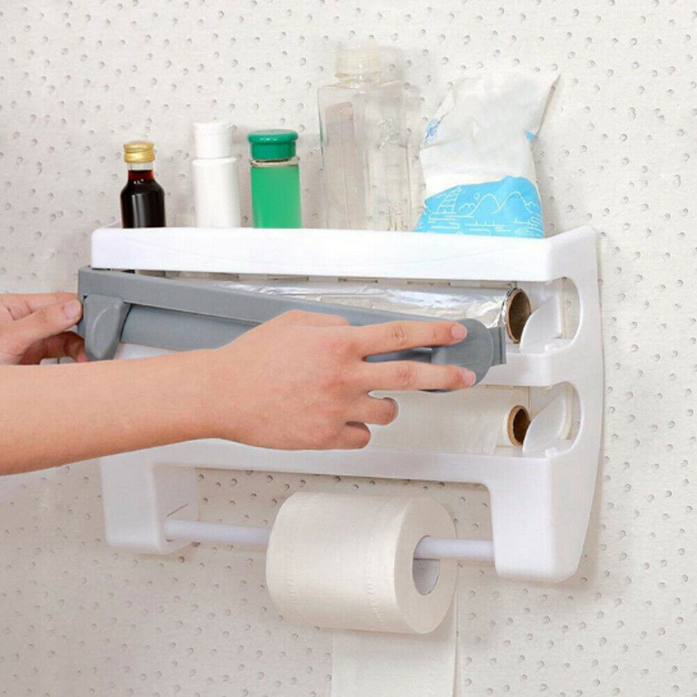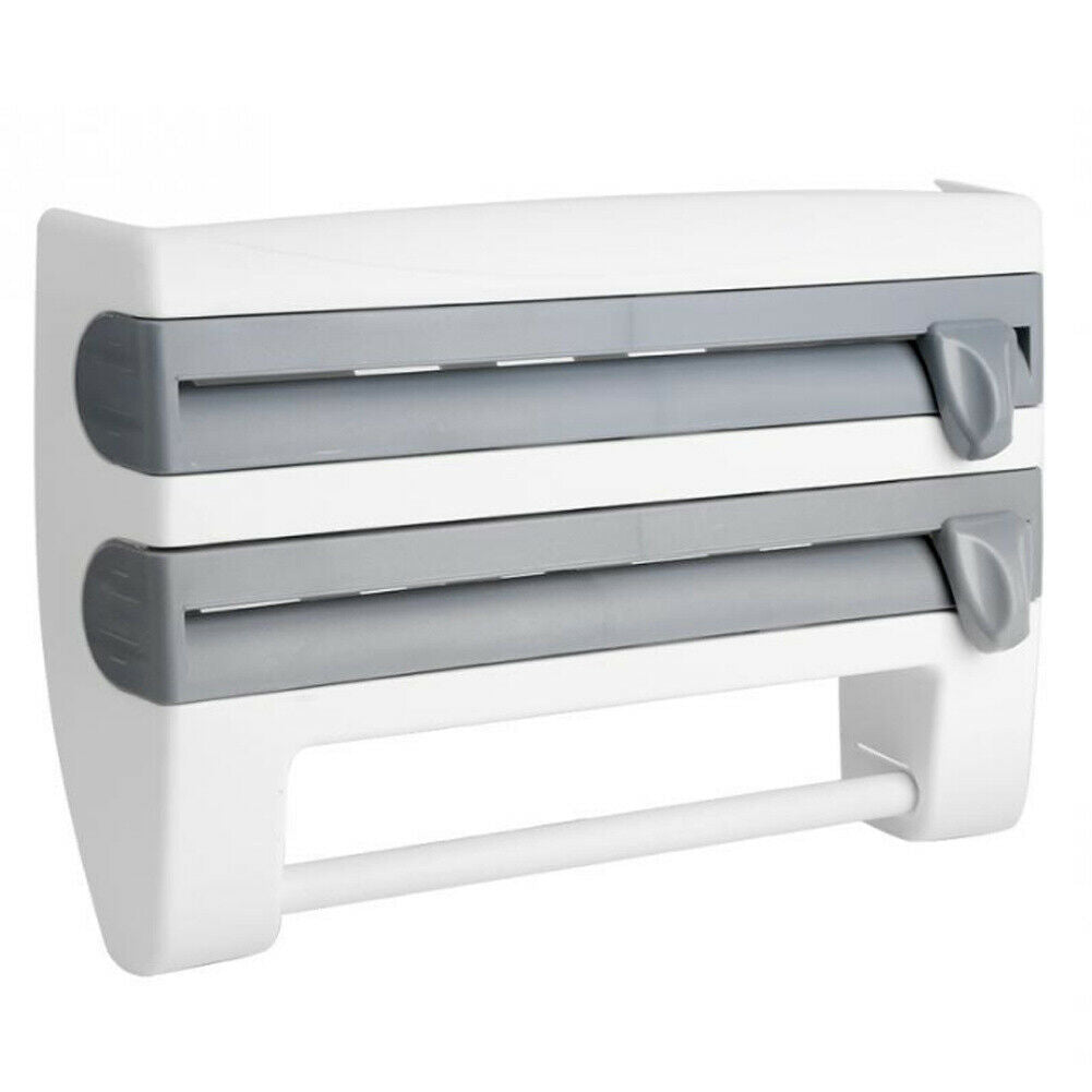 Kitchen Paper Aluminium Foil Cling Film Holder 4in1 Roll Dispenser Wall Mounted