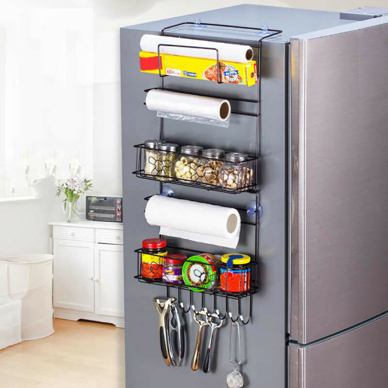Kitchen Refrigerator Fridge Hanging Rack Shelf Side Storage Multi-Layer Organize