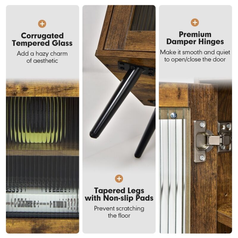 Kitchen Sideboard Wooden Storage Cabinet Cupboard w/Glass Doors Adjustable Shelf