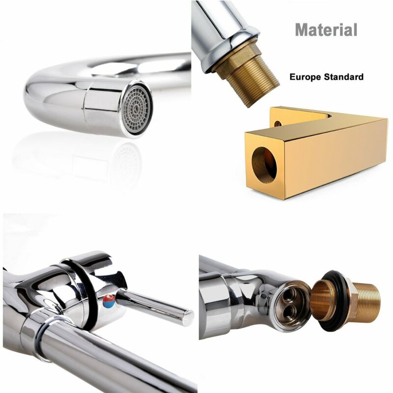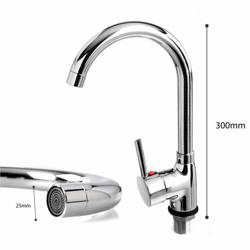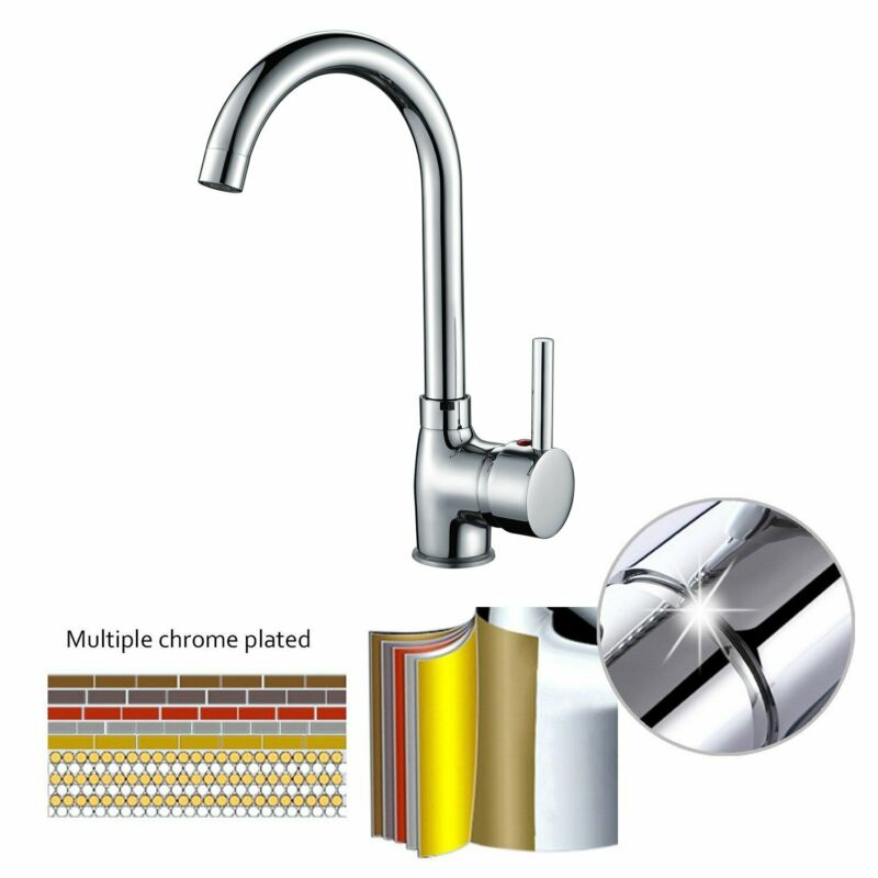 Kitchen Sink Basin Mixer Taps Swivel Spout Single Handle Tap Mono Chrome Faucet