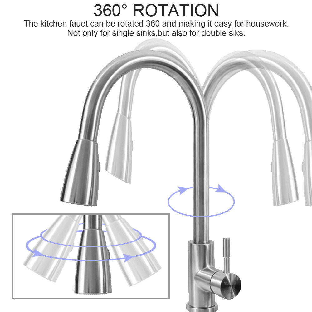 Kitchen Sink Mixer Taps Pull Out Single Lever Chrome Brass Spray Mono Tap Faucet