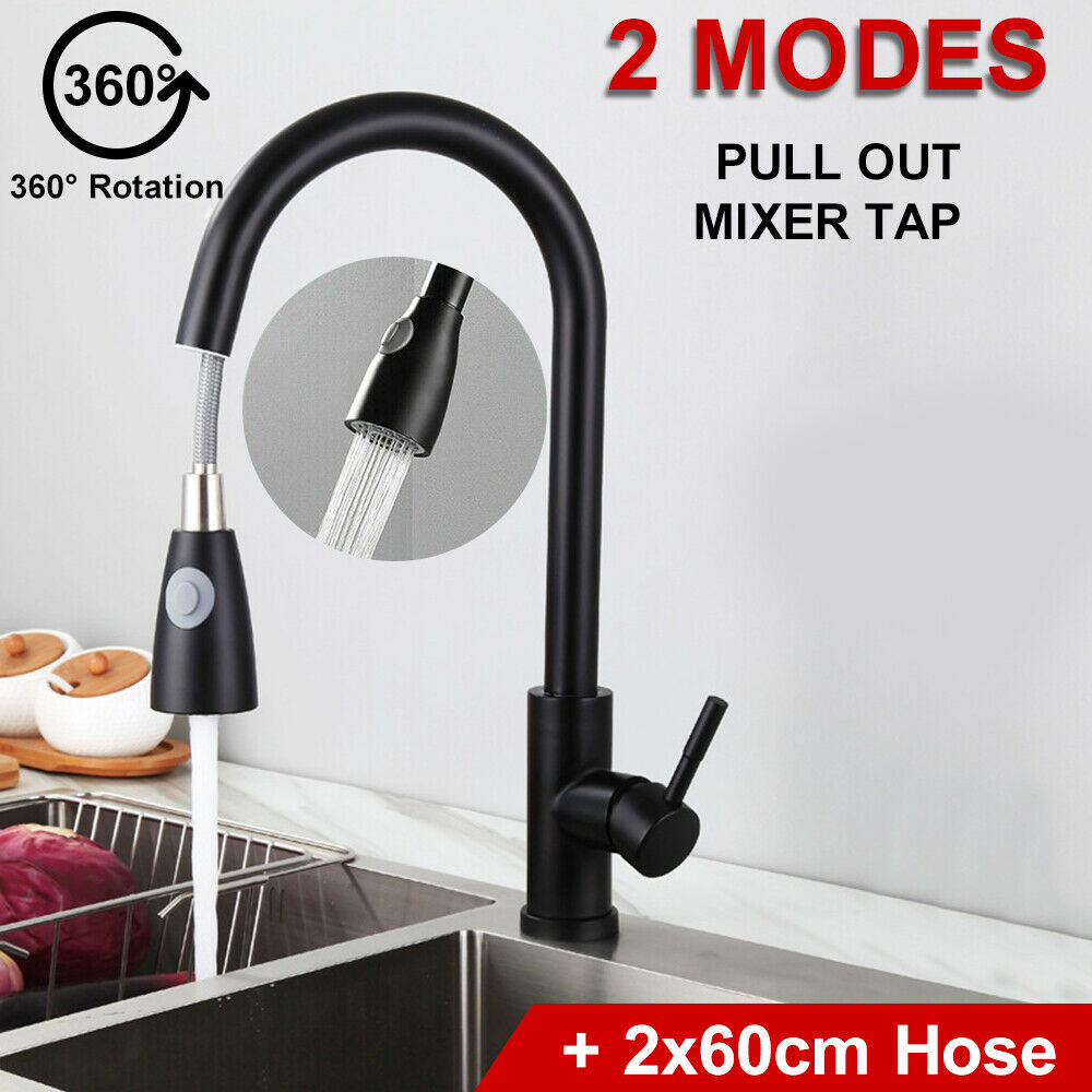 Kitchen Sink Mixer Taps Pull out Spray Swivel Spout Single Lever Tap Mono Faucet