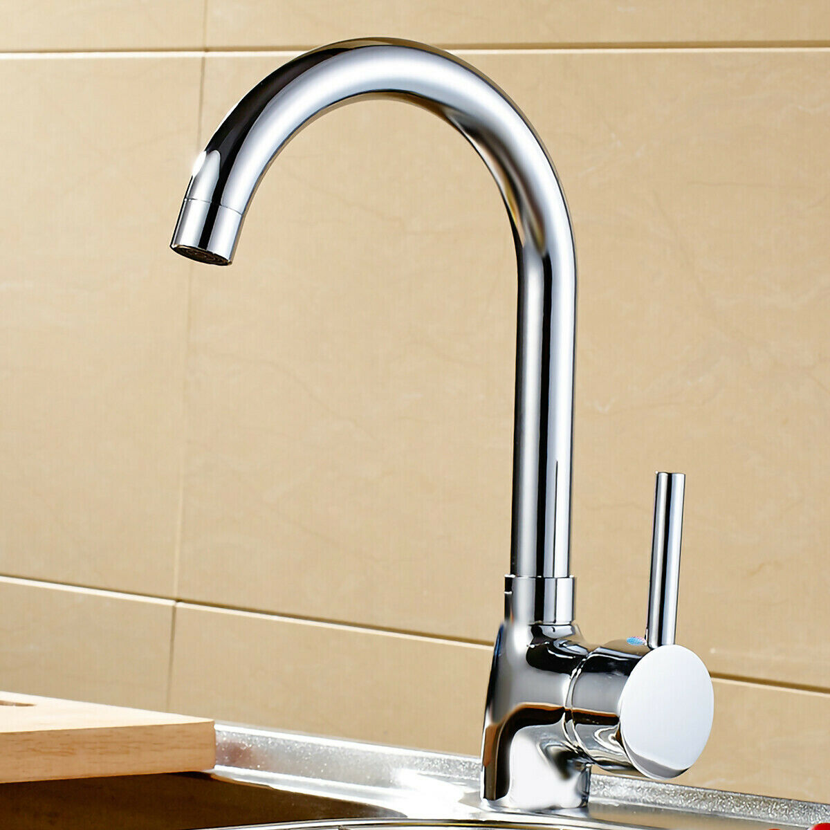 Kitchen Sink Mixer Taps Swivel Spout Single Lever Tap Mono Modern Chrome Faucet