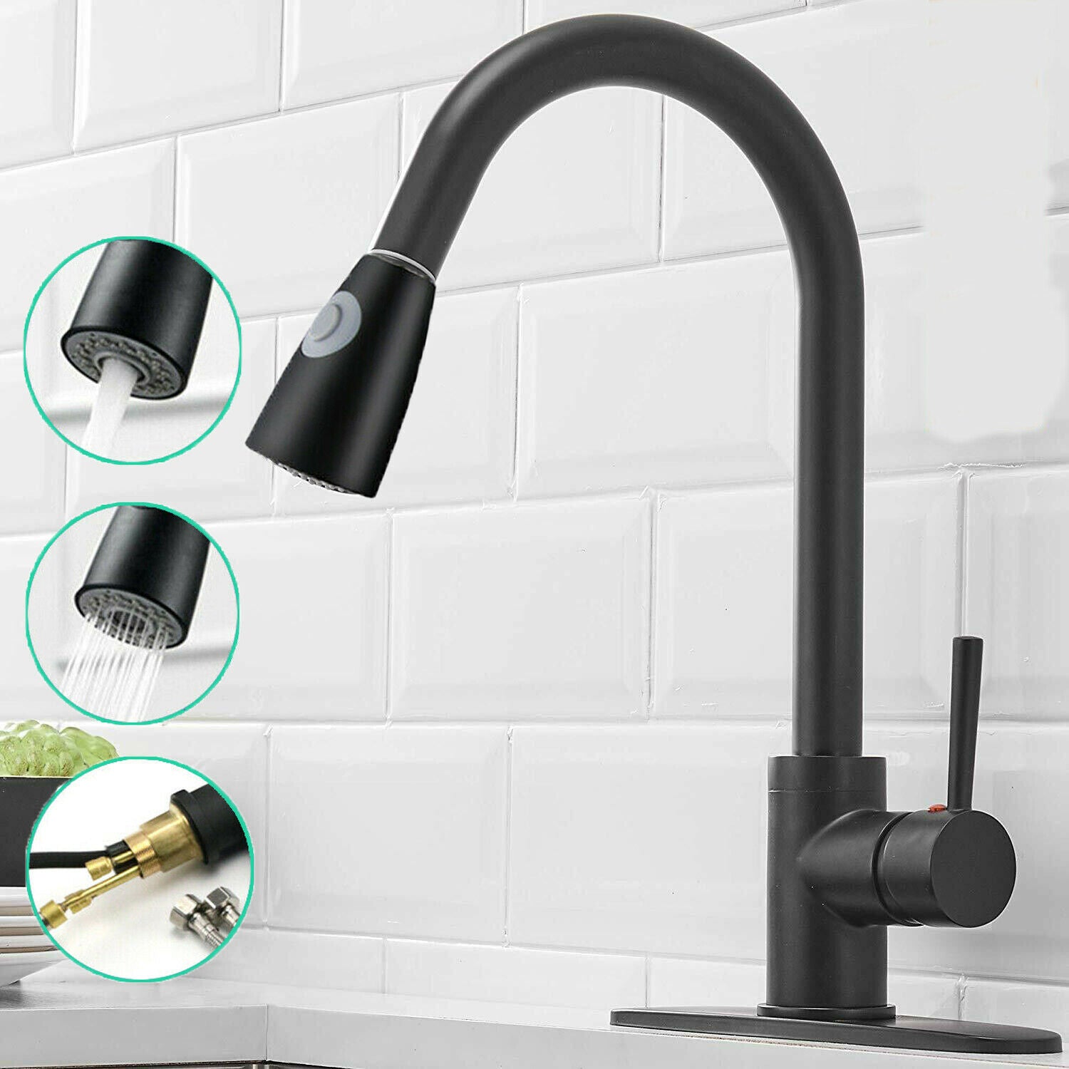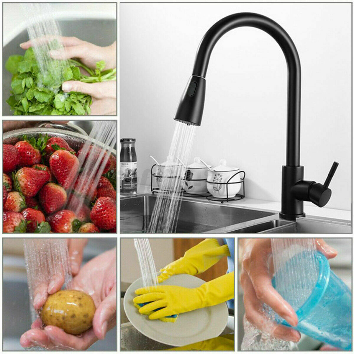 Kitchen Sink Taps Pull Out Spray Single Lever Swivel Spout Brass Mixer Tap UK MU