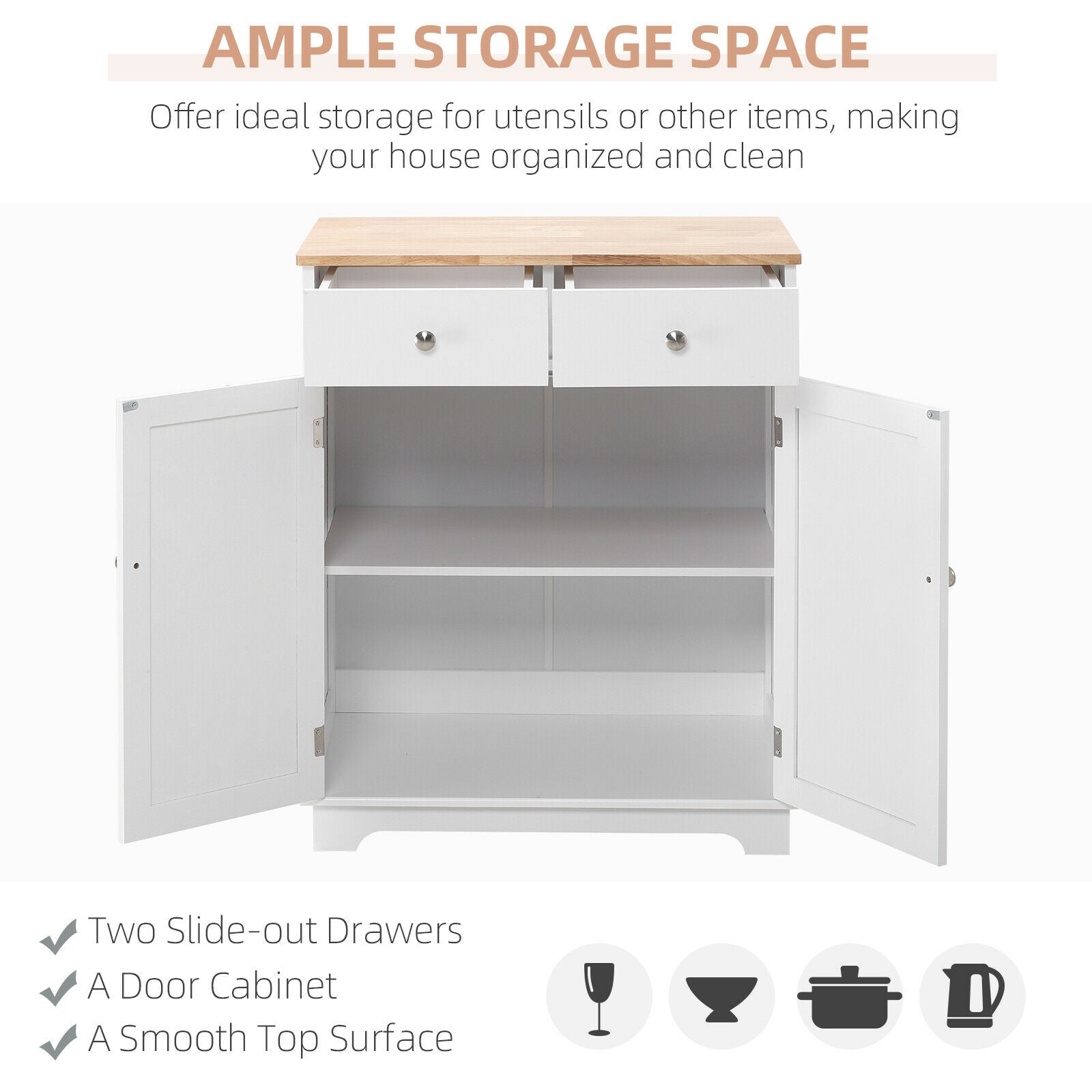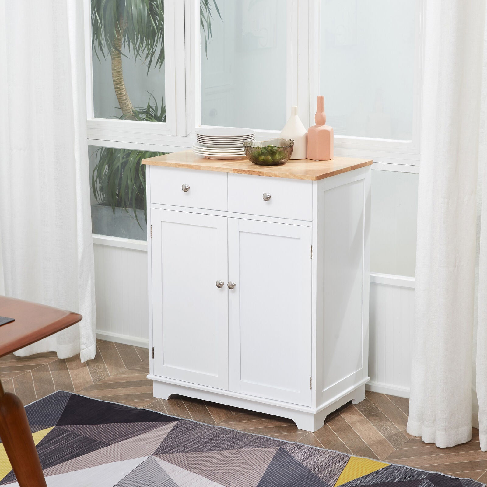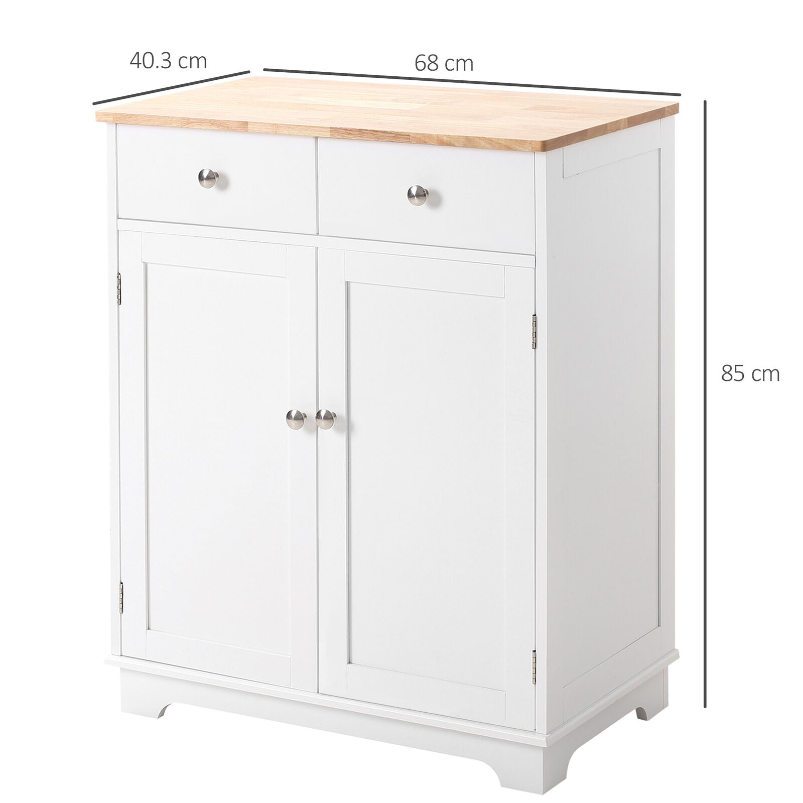 Kitchen Storage Cabinet Cupboard Organiser with Rubberwood Top, Shelf,Drawer