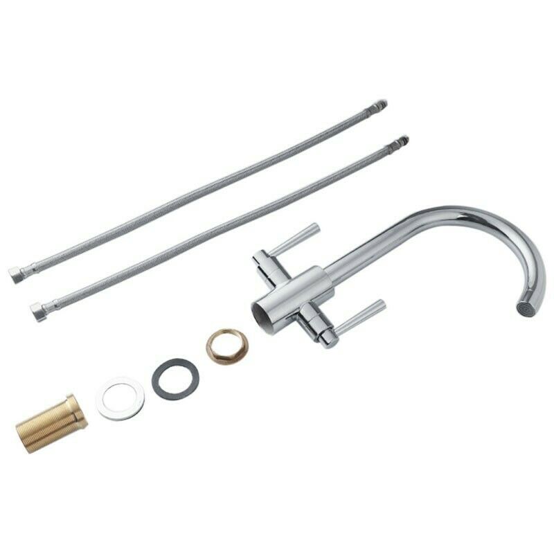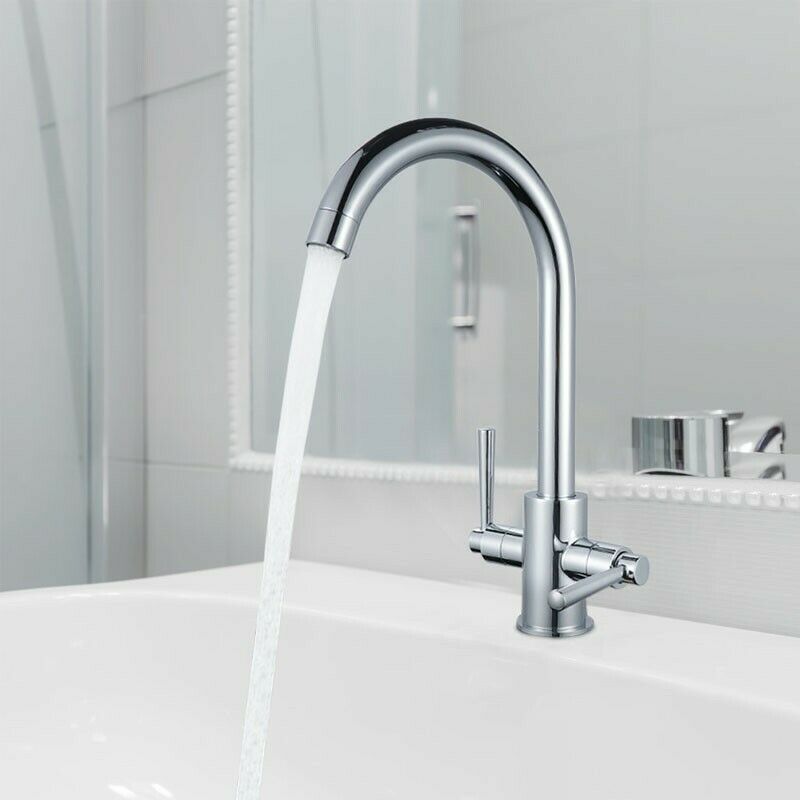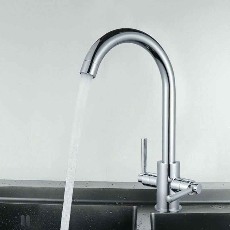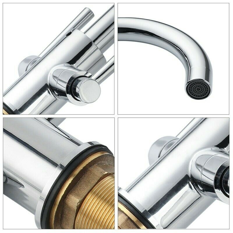 Kitchen Tap Sink Mixer 2 Lever Tap Swivel Modern Chrome Basin Water Fall Taps