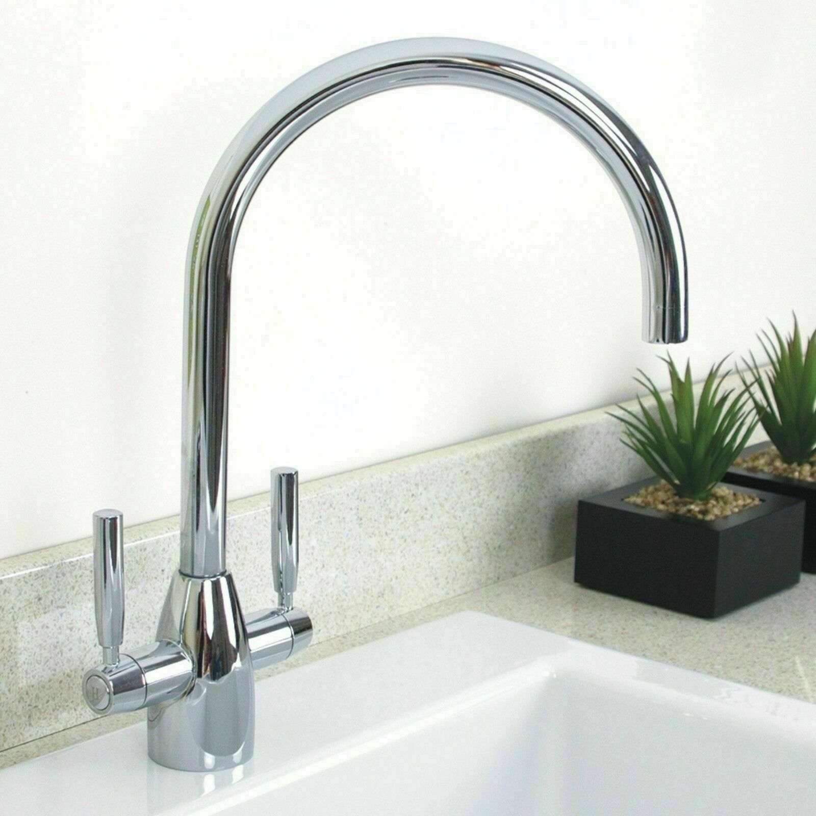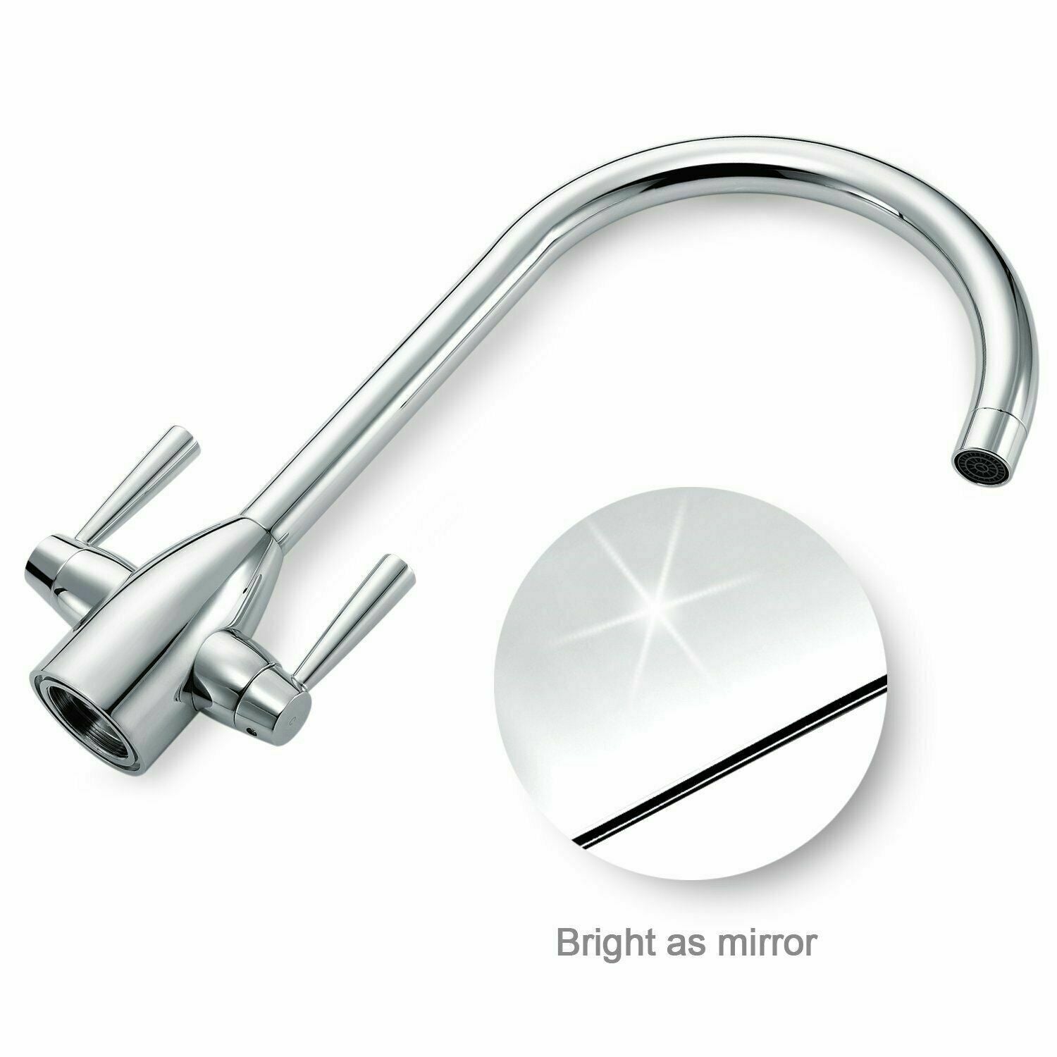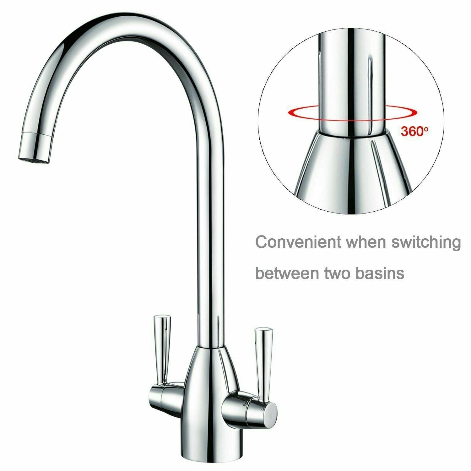 Kitchen Tap Sink Mixer Twin Lever Tap Swivel Modern Chrome Basin Waterfall Taps