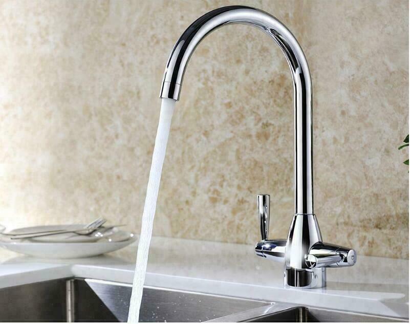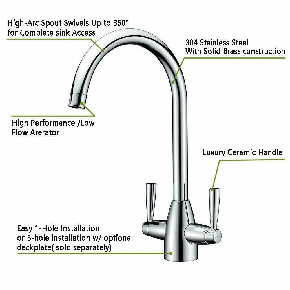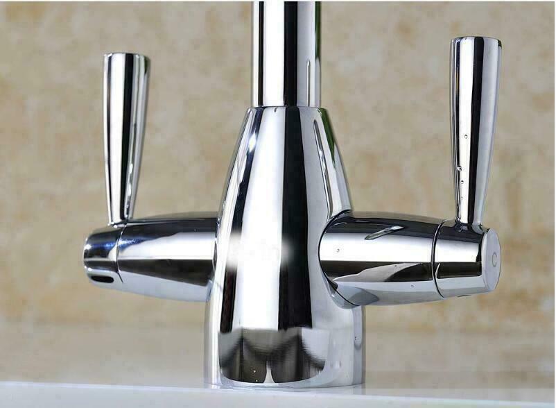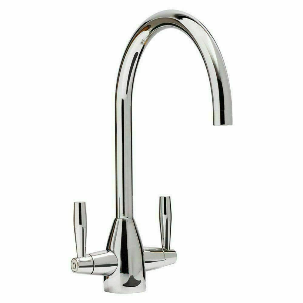 Kitchen Tap Sink Mixer Twin Lever Tap Swivel Modern Chrome Basin Waterfall Taps