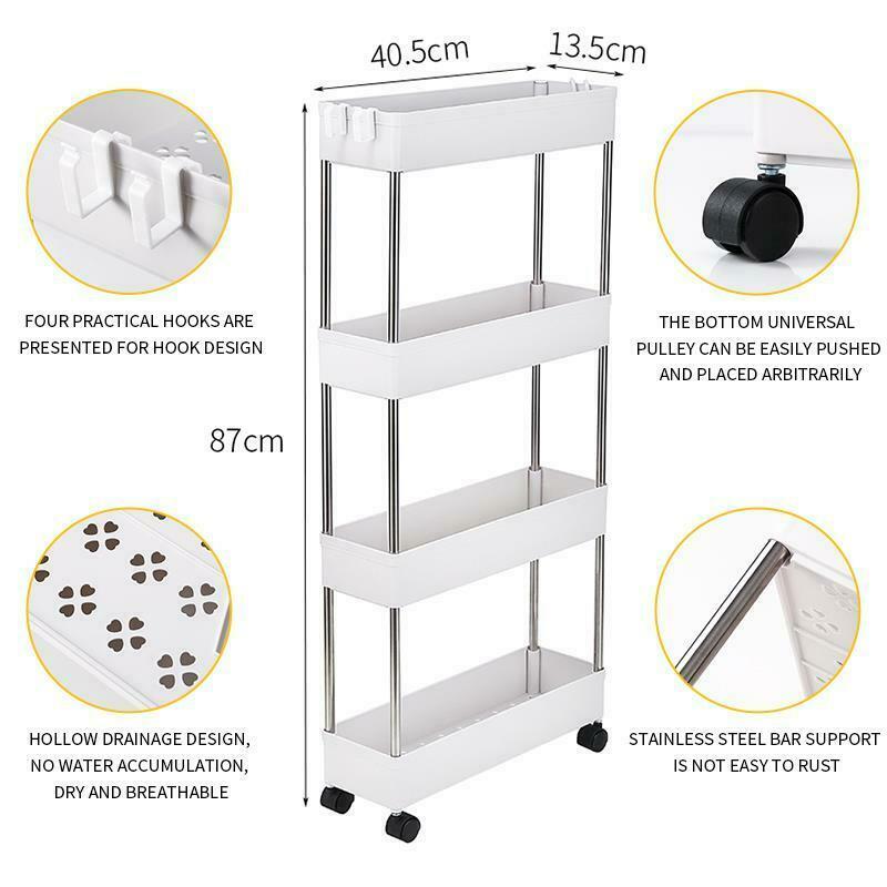 Kitchen Trolley Cart Storage Rack Tray Shelf Rolling Wheel 4 Tier