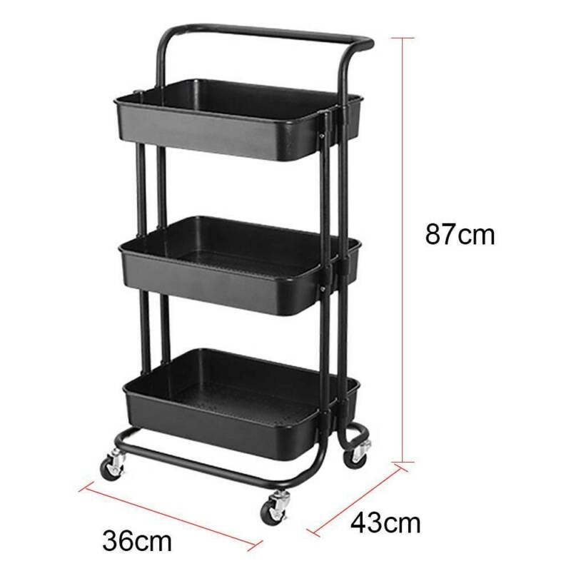 Kitchen Trolley Cart Storage Rack Tray Shelf Rolling Wheel With Handle 3 Tier