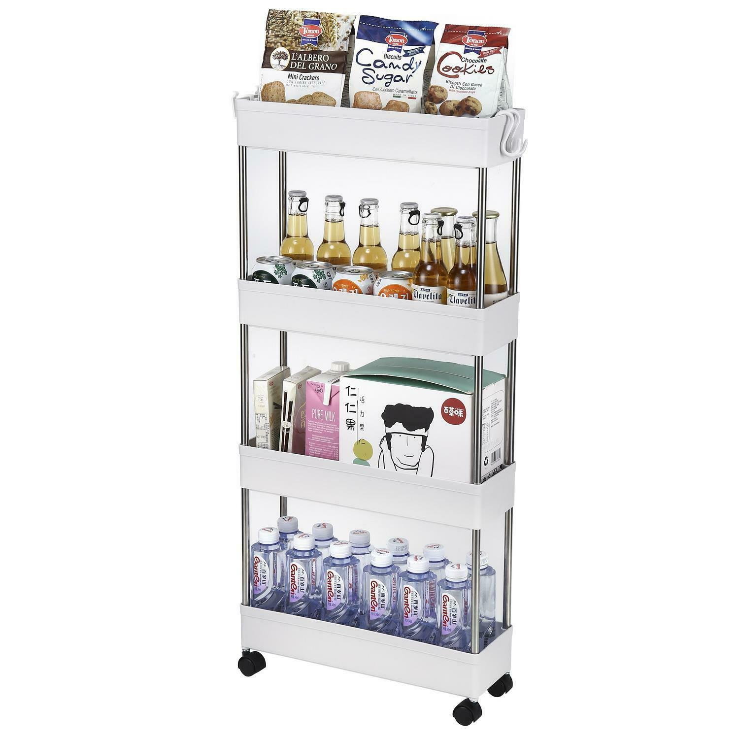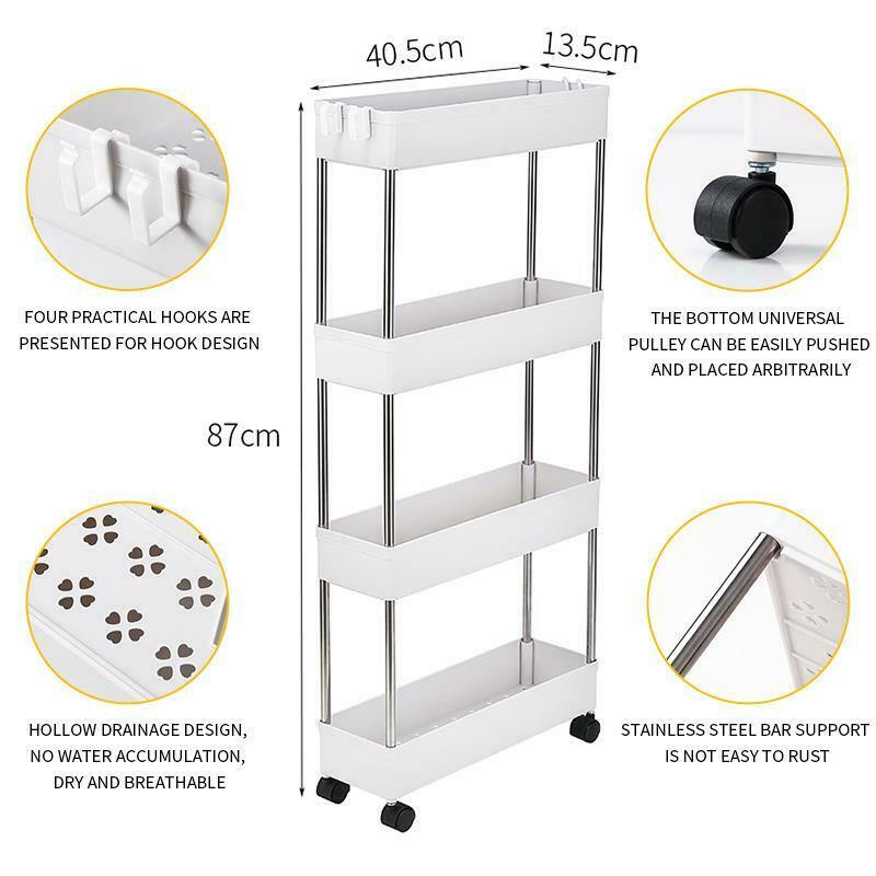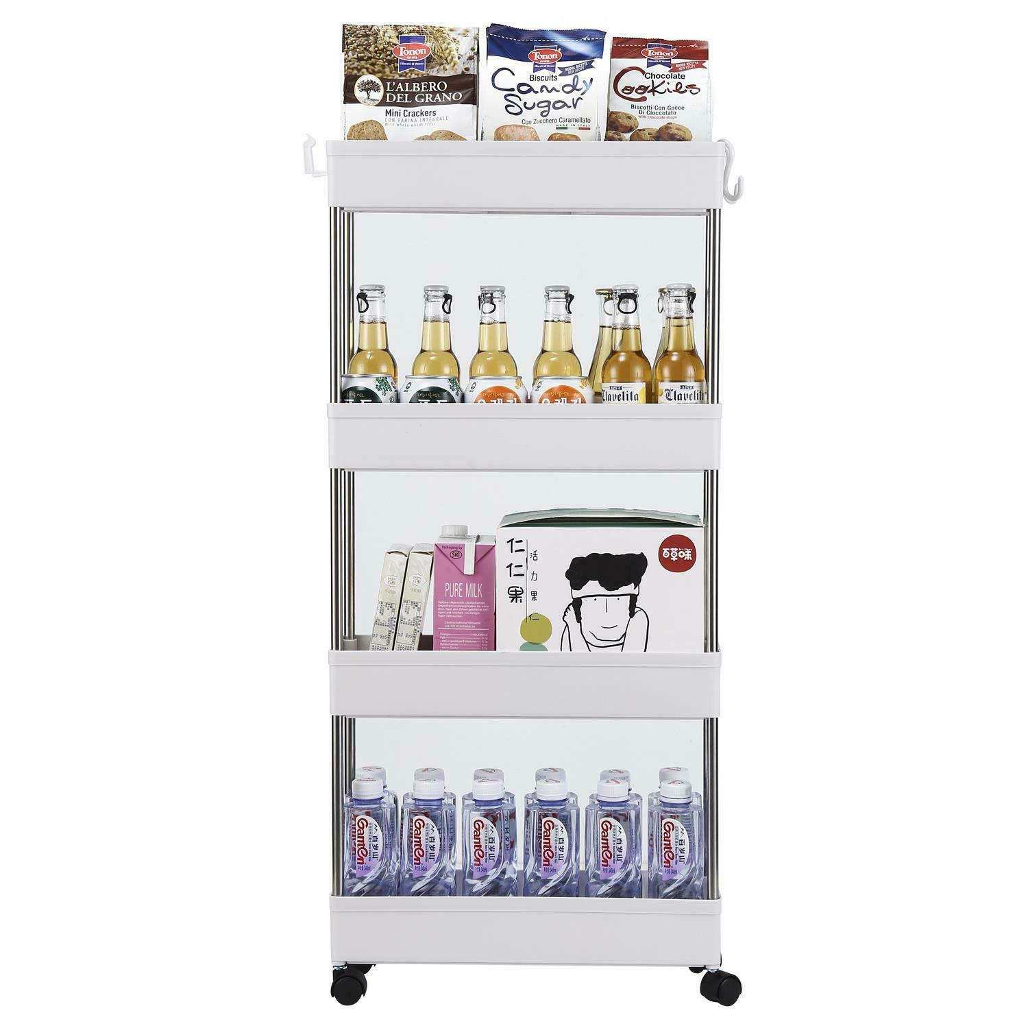 Kitchen Trolley Cart Storage Rack Tray Shelf Rolling Wheel With Handle 4 Tier