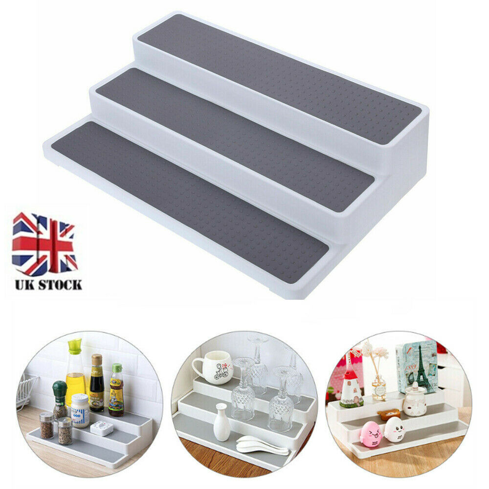 Kitchen White 3 Tier Shelf Spice Herb Jar Rack Holder Cupboard Organiser Storage