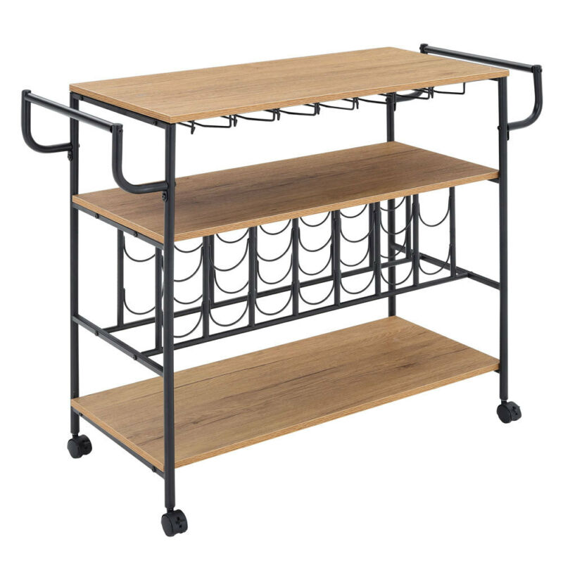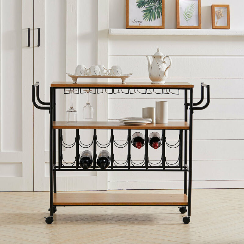 Kitchen Wooden Island Serving Cart Goblet Wine Rack Bar Restaurant Food Storage