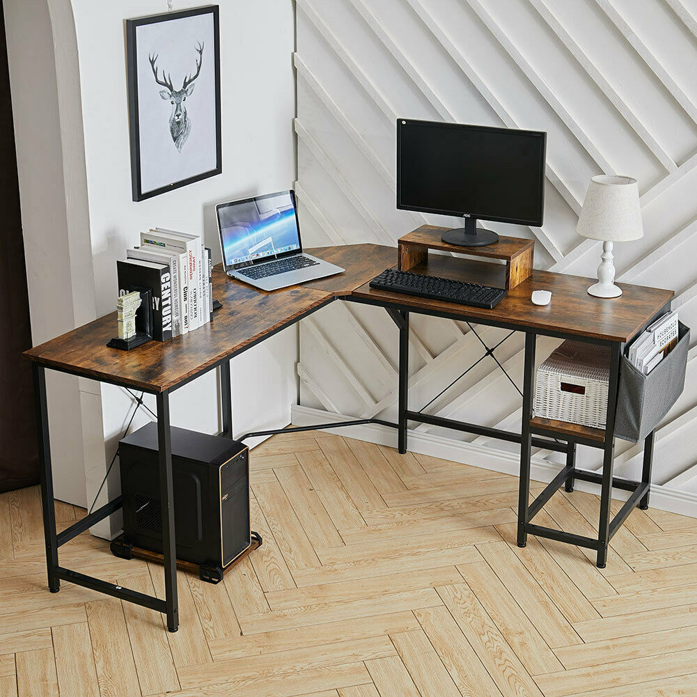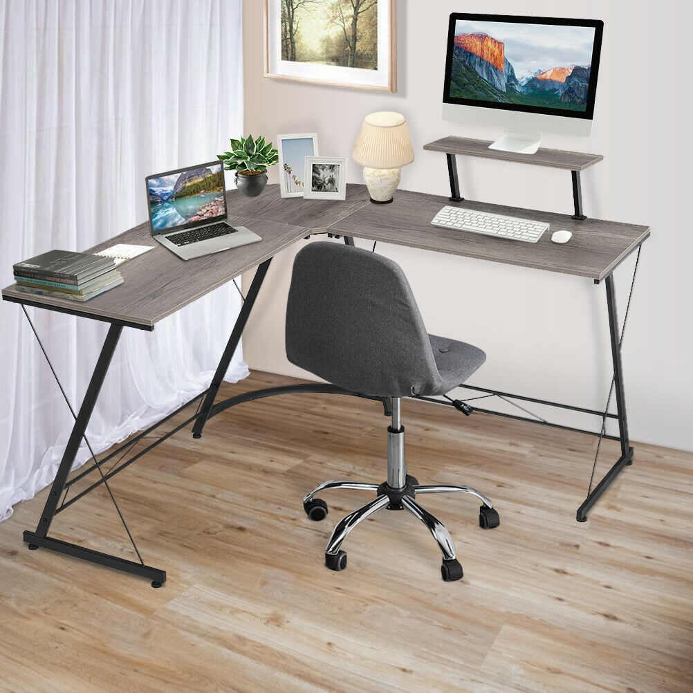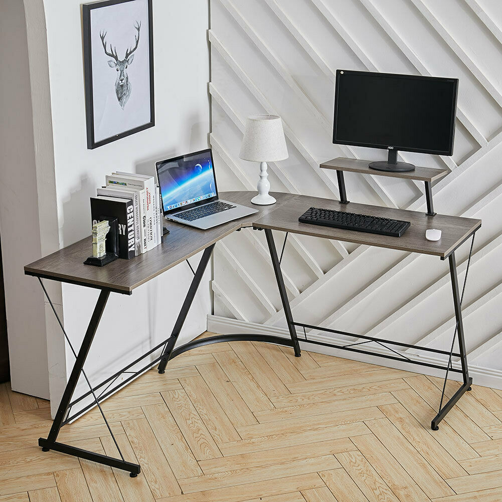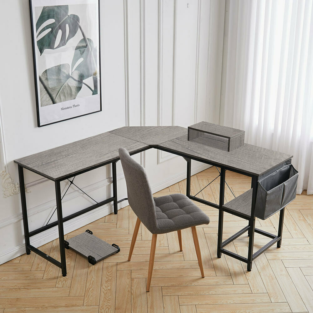 - L Shape Corner Computer Desk Laptop PC Study Table HomeOffice Workstation Gaming