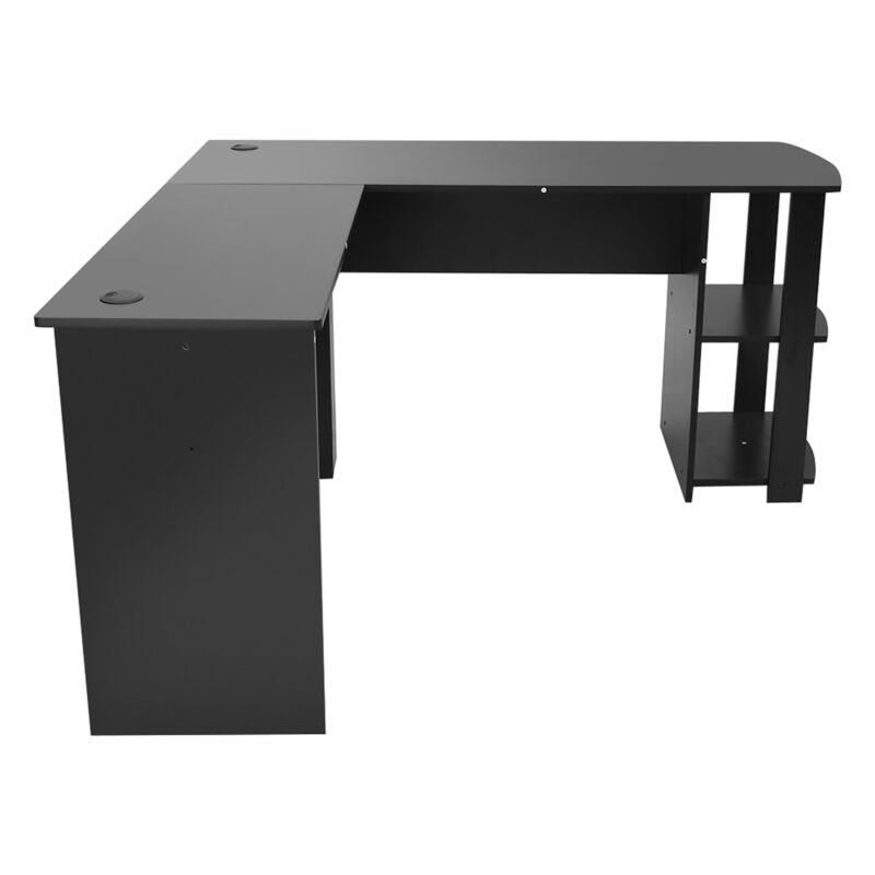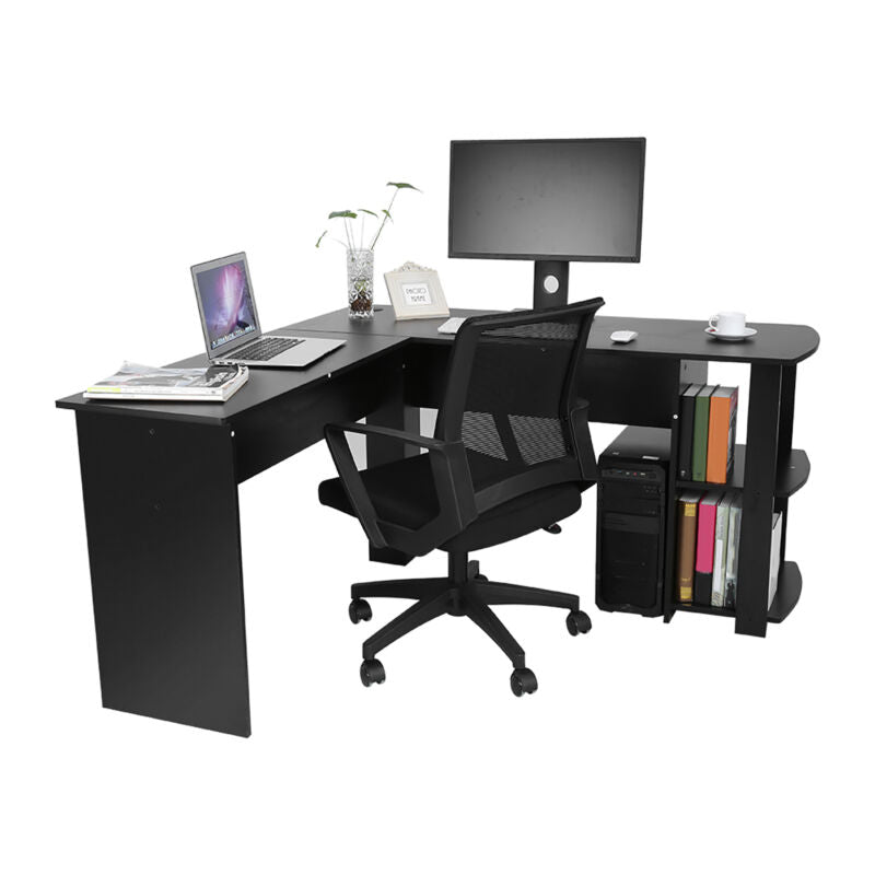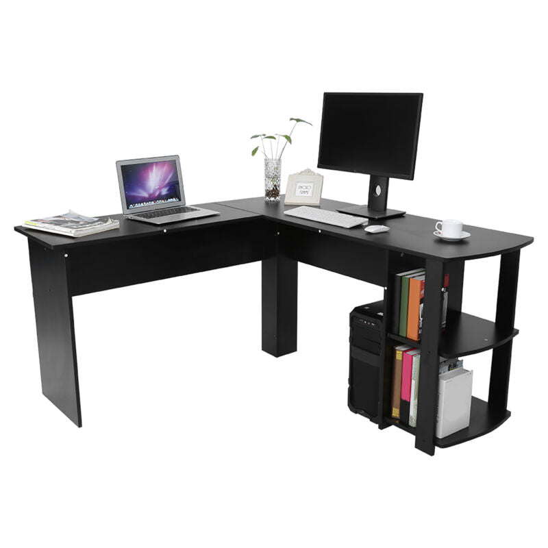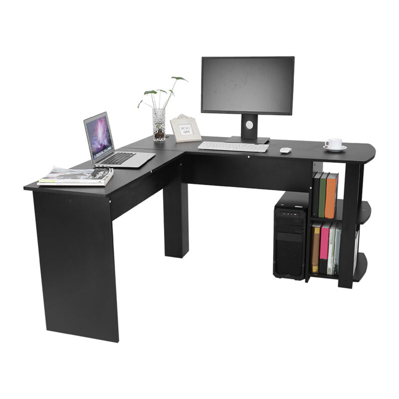 L Shape Corner Computer Table with Bookshelf Home Office Study Laptop Desk Black