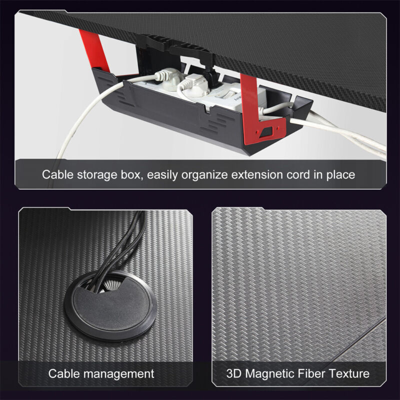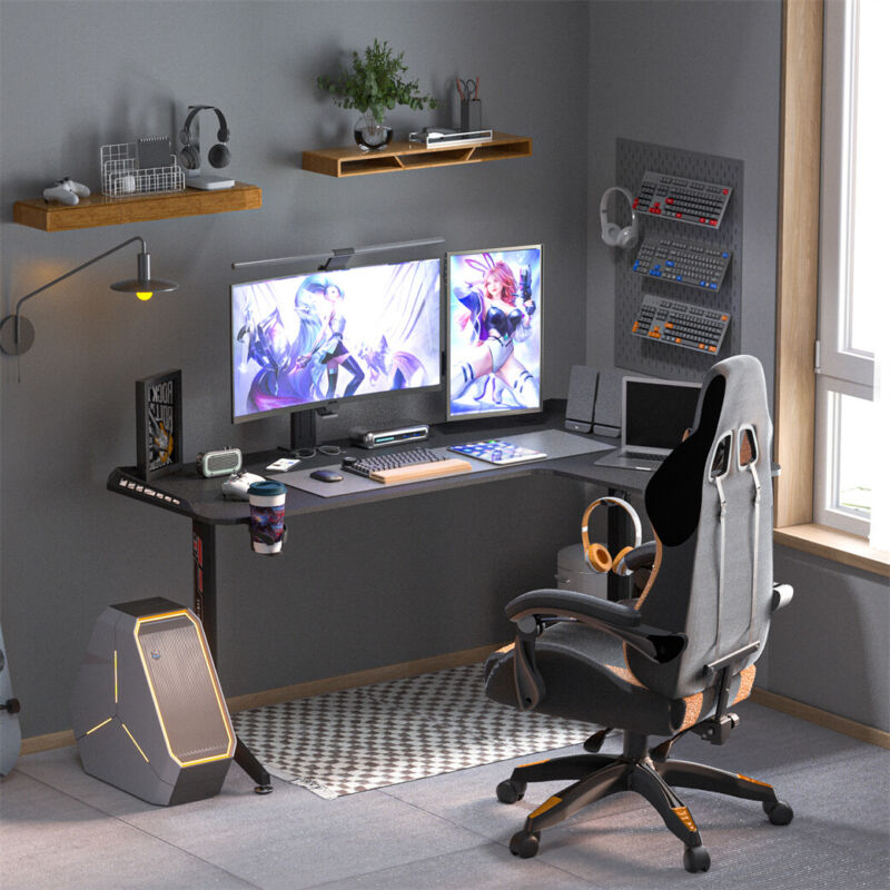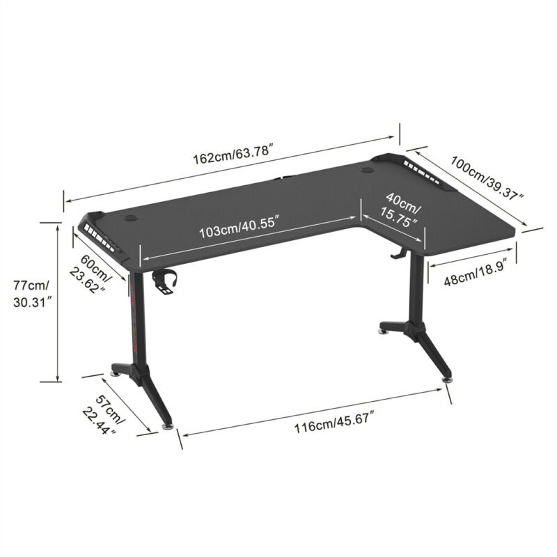 L-Shape Corner Gaming Desk Computer PC Workstation Writing Table with LED Lights