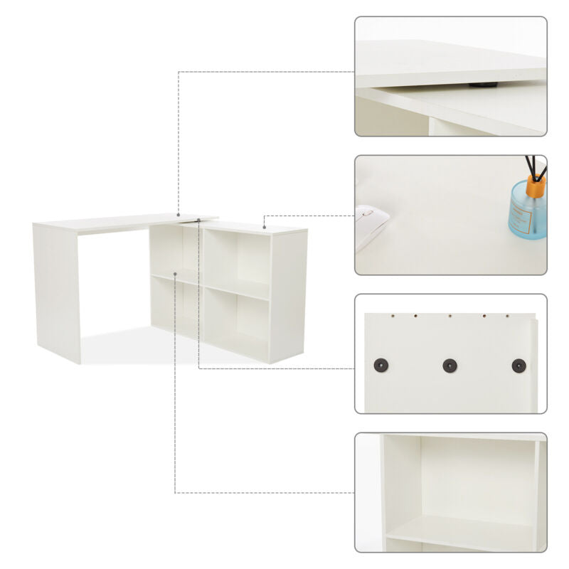 L-shaped Computer Desk Corner PC Table Workstation Home Office w/4 Shelves White