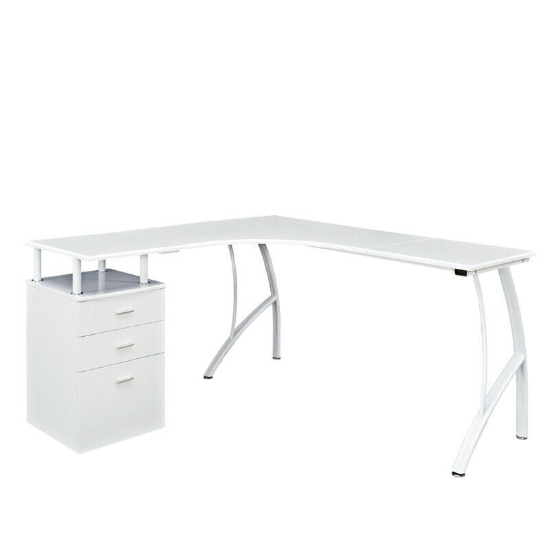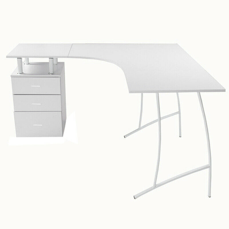 L-shaped Computer Desk Corner Table Drawers Workstation Home Office Furniture
