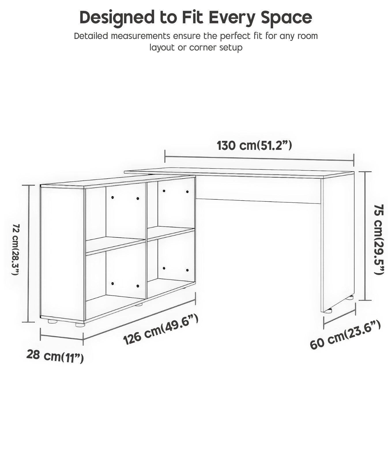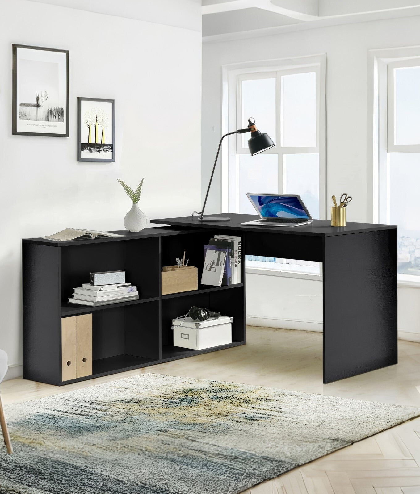 L-shaped Computer Desk Corner Table w/ 4 Storage Shelves Workstation Home Office