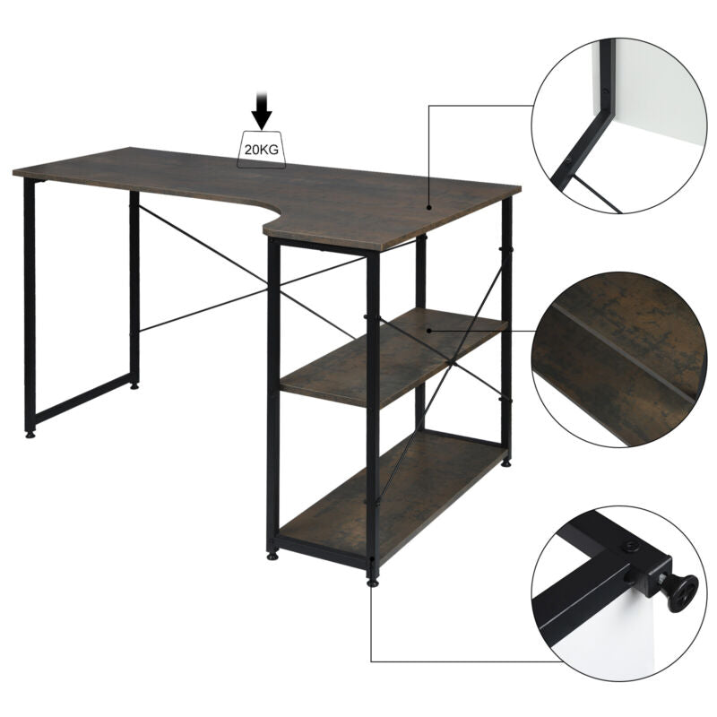 L-Shaped Computer Desk With Shelves Gaming Laptop Table Workstation Home Office