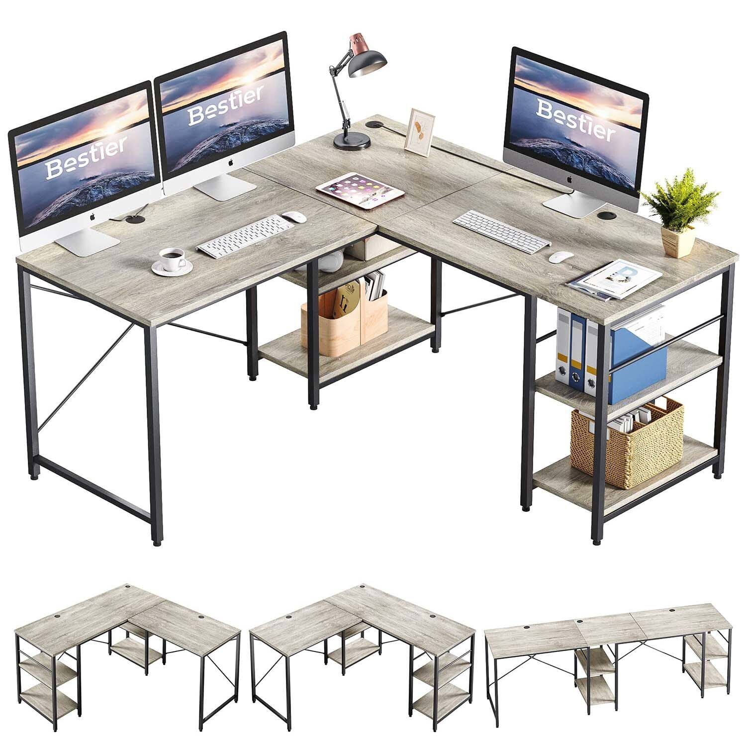 L Shaped Computer Office Desk Corner Table PC Laptop Study Workstation w/ Shelve
