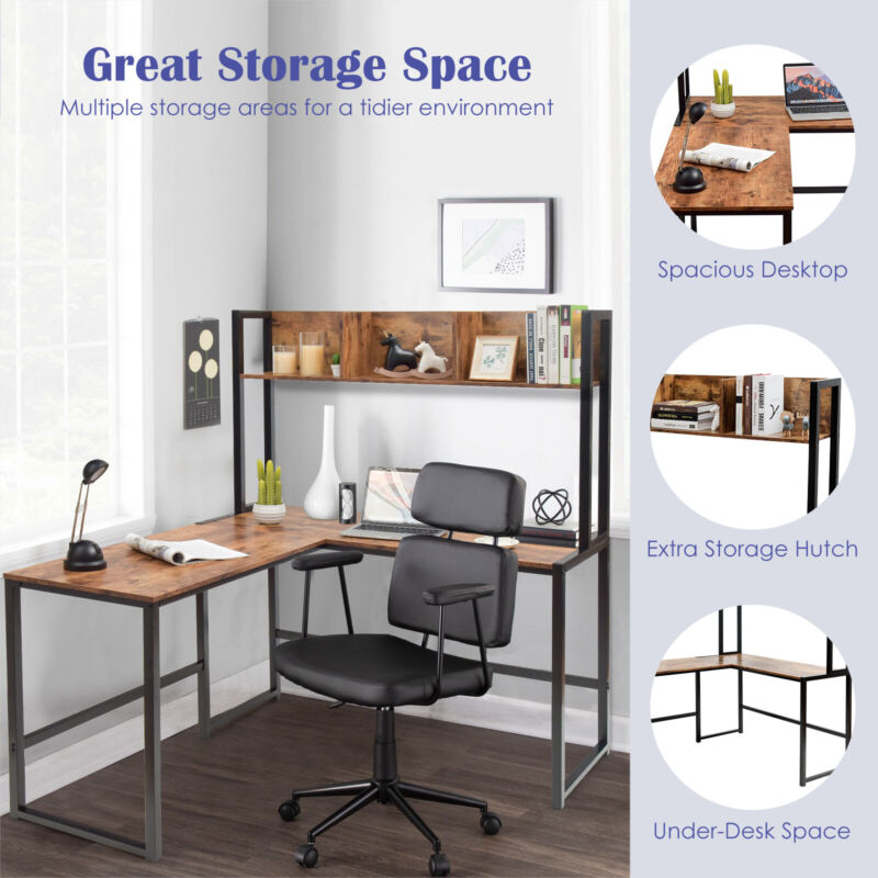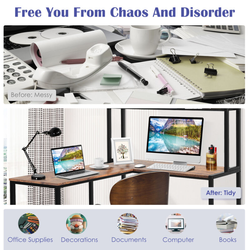 L-Shaped Corner Computer Desk Large PC Table Workstation with Storage Bookcase