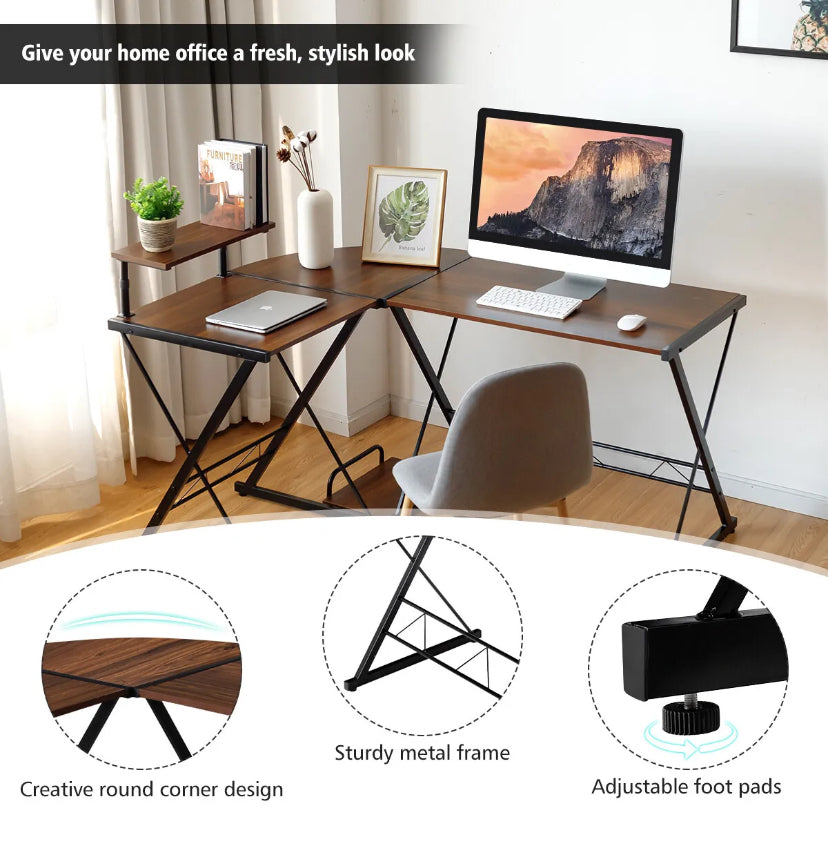 L-Shaped Corner Computer Desk PC Table Workstation W/ Monitor Stand & Host Tray