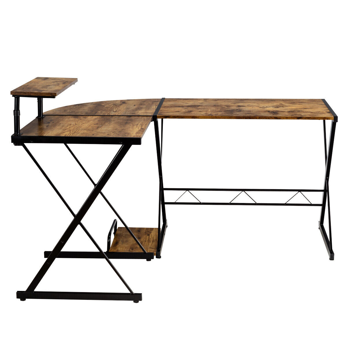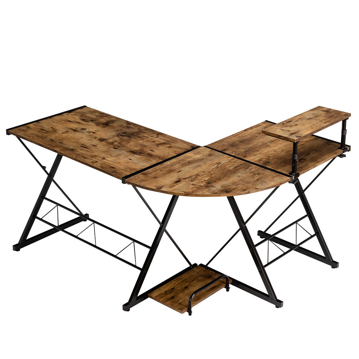 L-Shaped Corner Computer Desk PC Table Workstation W/ Monitor Stand & Host Tray