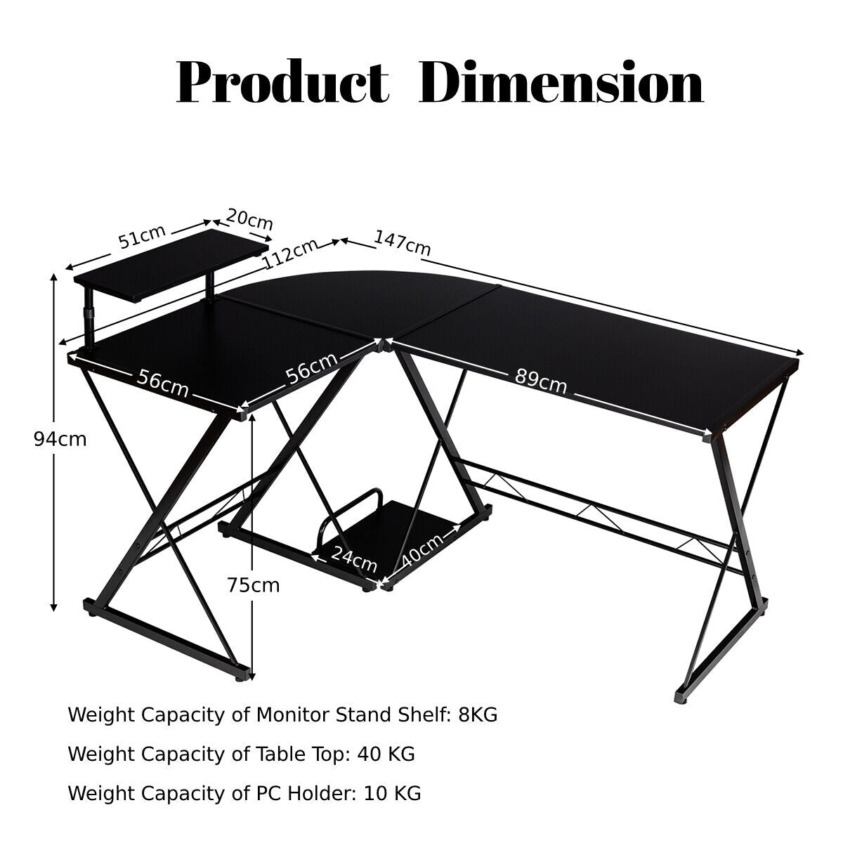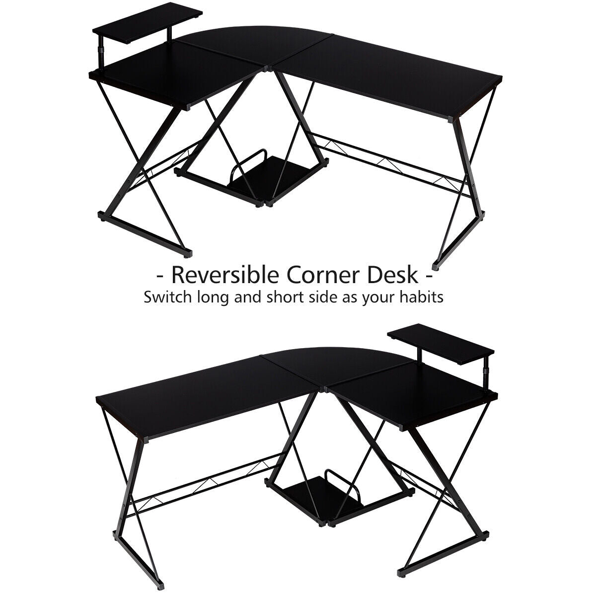 L-Shaped Corner Computer Desk PC Table Workstation W/ Monitor Stand & Host Tray