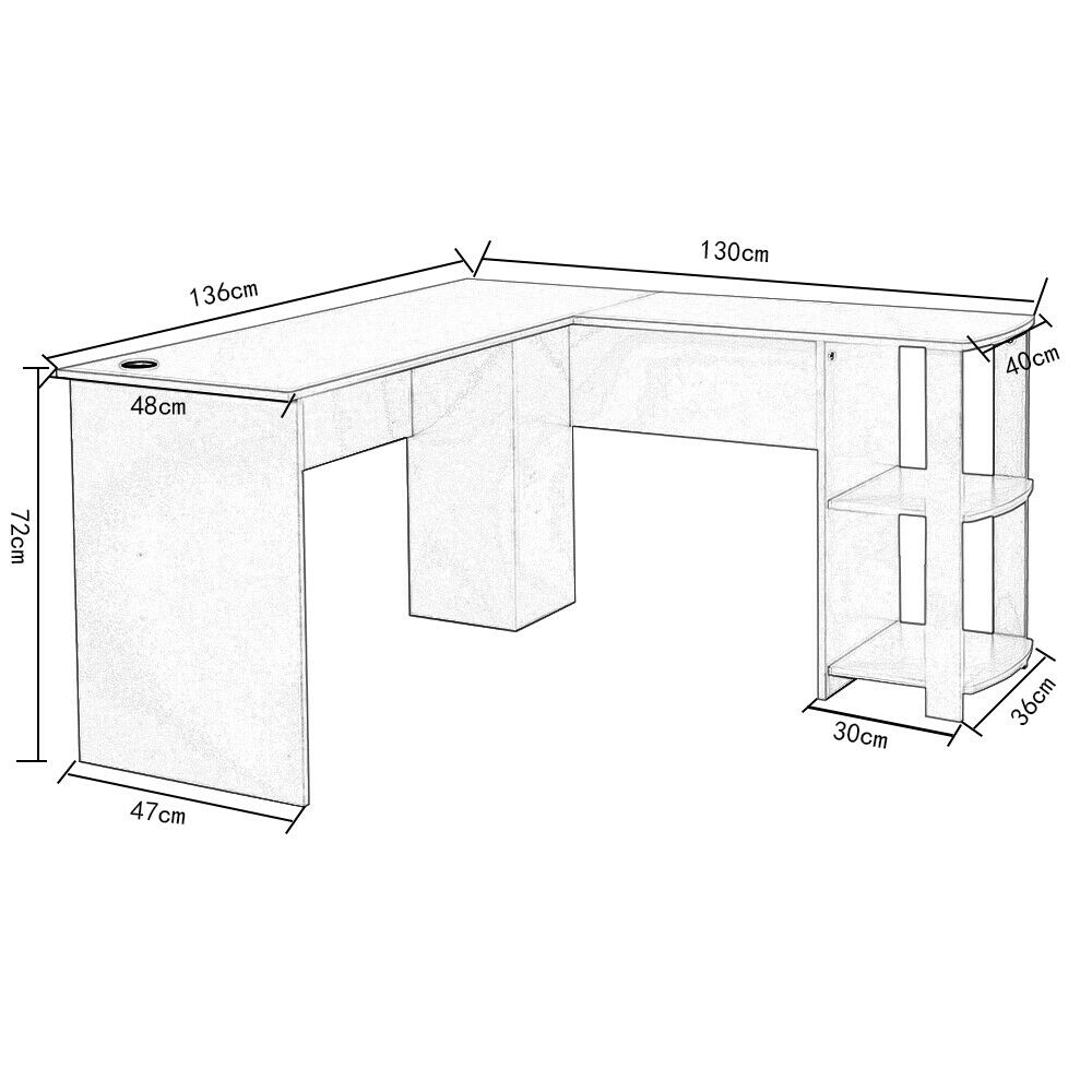L-shaped Corner Computer Desk PC Workstation Table Home Office Book Shelves
