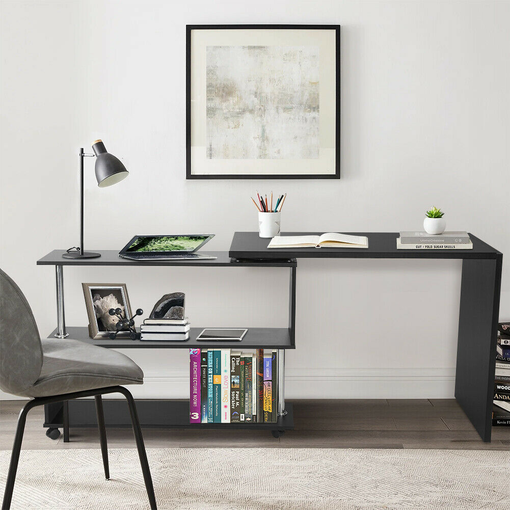 L-Shaped Corner Desk PC Computer Workstation Table Bookcase Storage Shelf Black