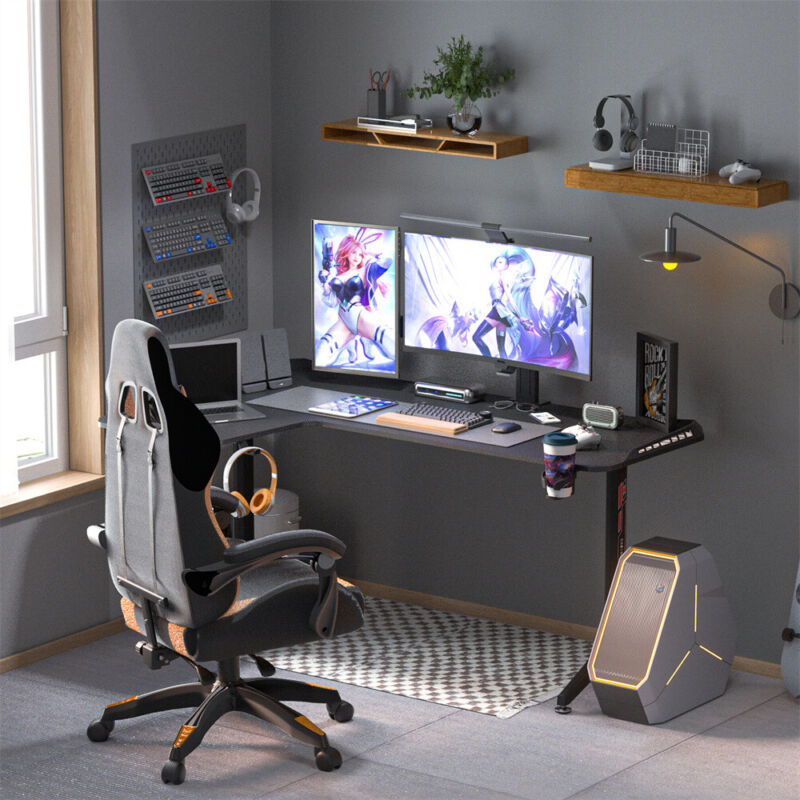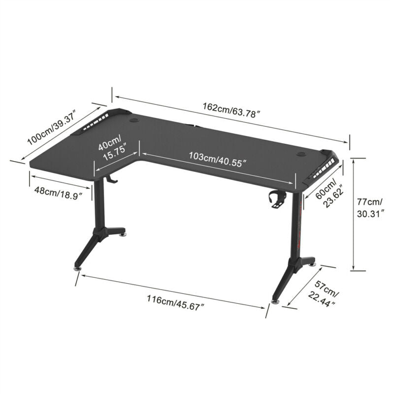 L-Shaped Corner Gaming Desk RGB PC Study Table Workstation Streaming Metal Legs