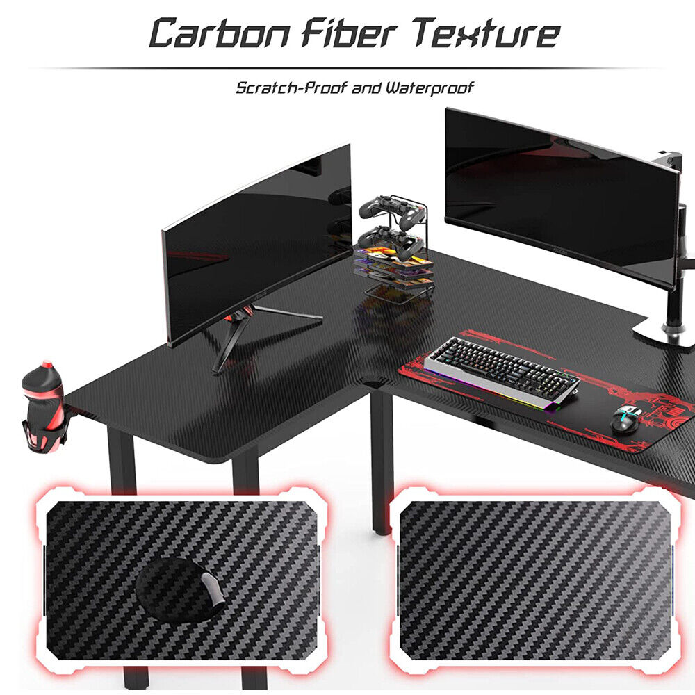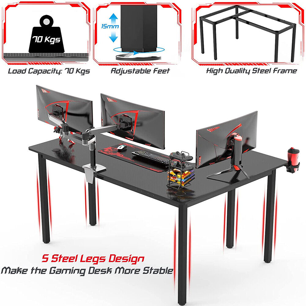 L Shaped Gaming Computer Desk Racing Table Home Study Workstation Cup Holder