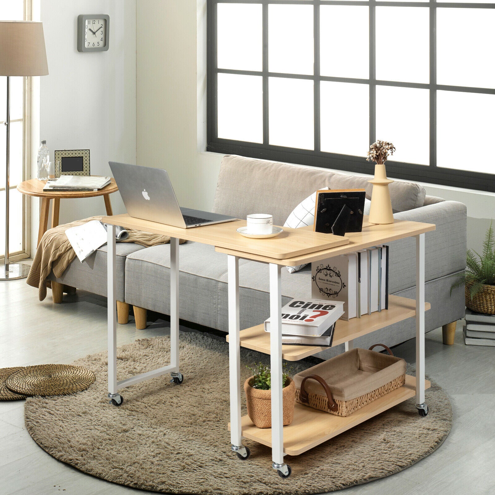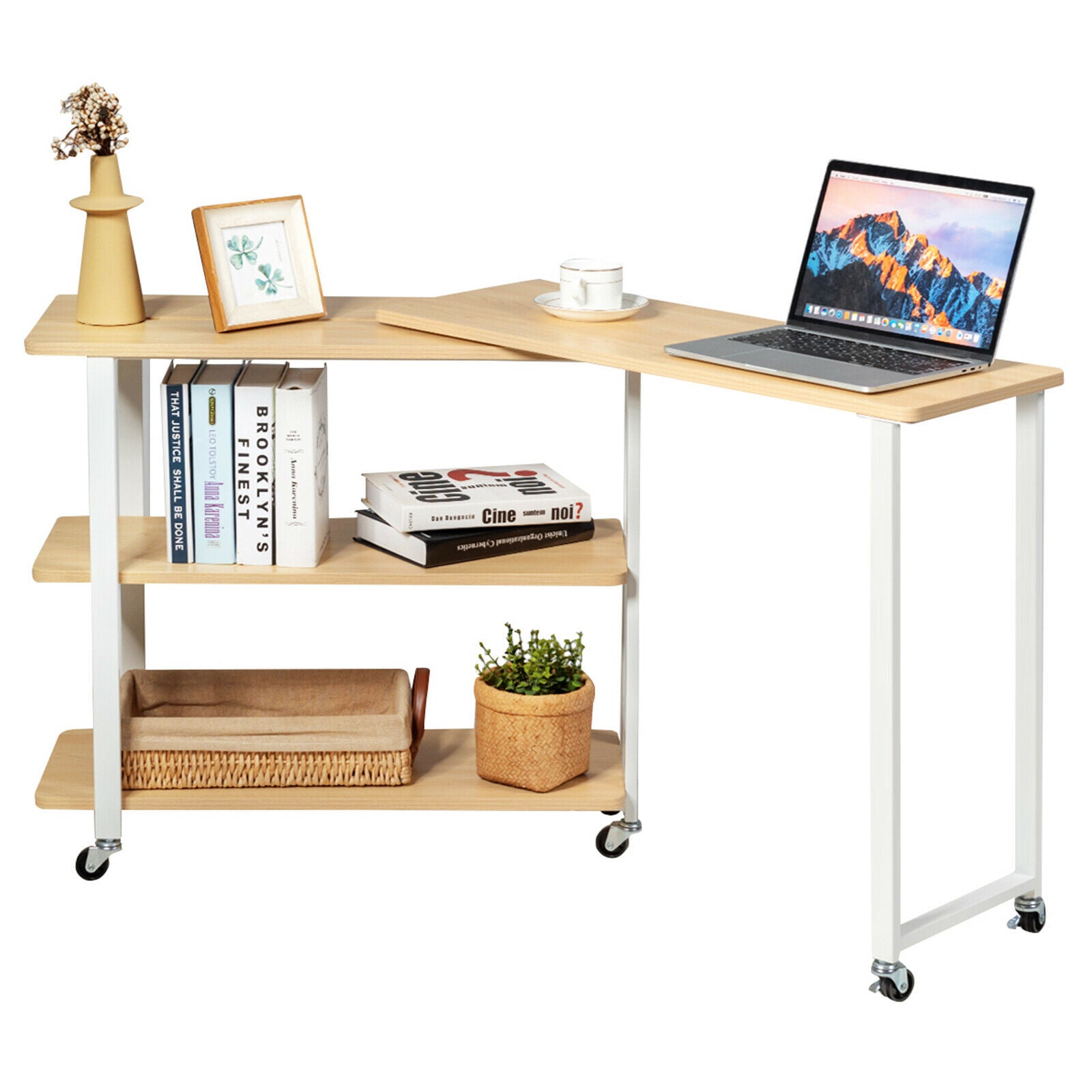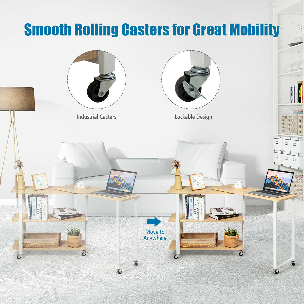 L-shaped Mobile 360° Rotating Corner Computer Desk Laptop Computer PC Desk Home