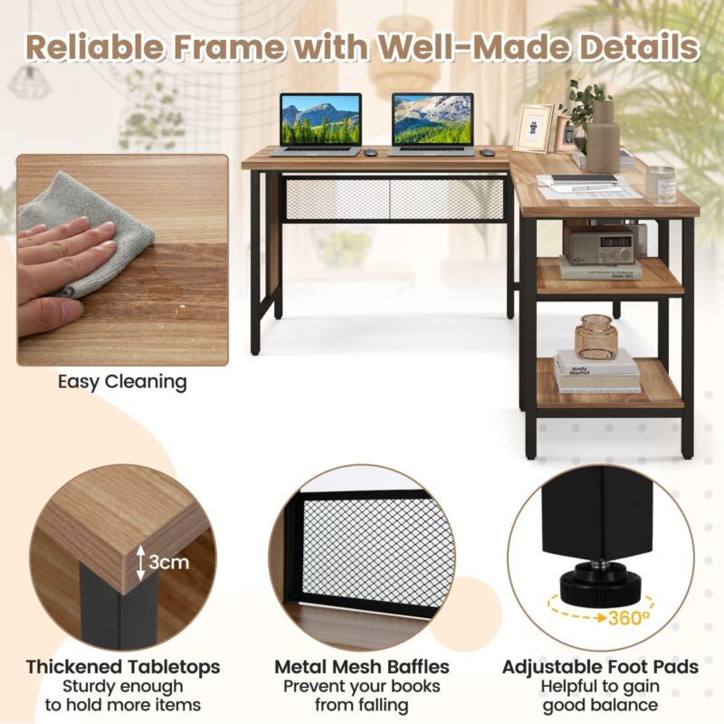 L-shaped Office Desk 150cm Corner Desk Home Office Writing Desk Workstation