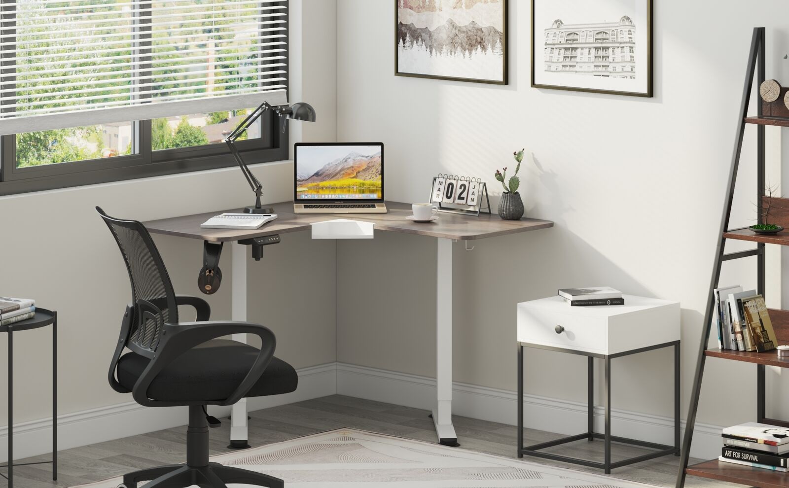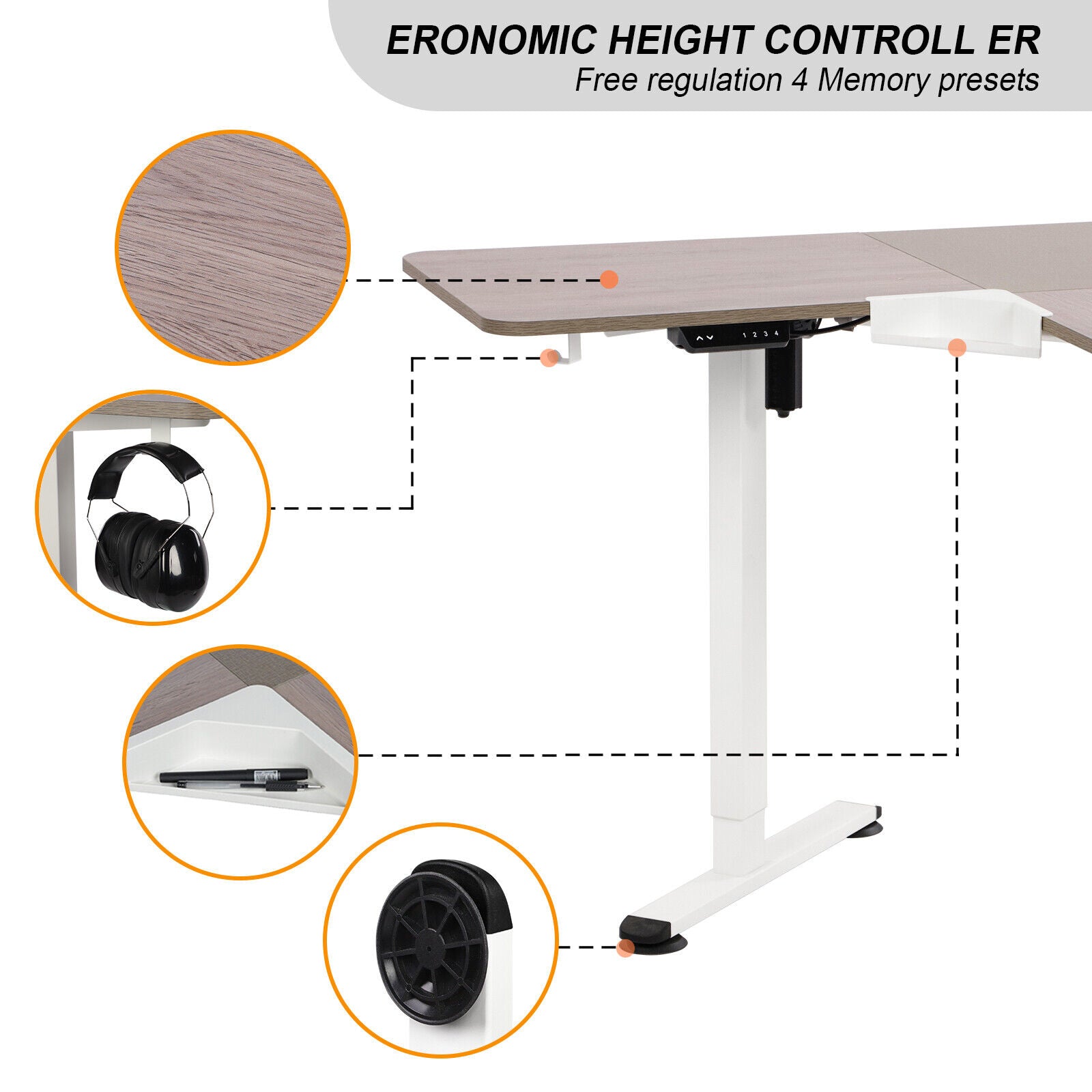 L-Shaped Office Desk Standing Adjustable Height Electric Stand Desk Workstation