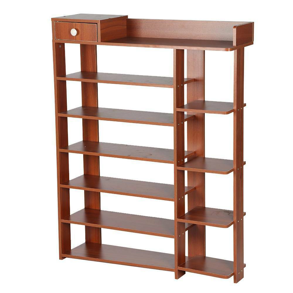 L123S Large 7 Tier Shoe Storage Cabinet Wooden Boots Stand Racks Organizers Unit