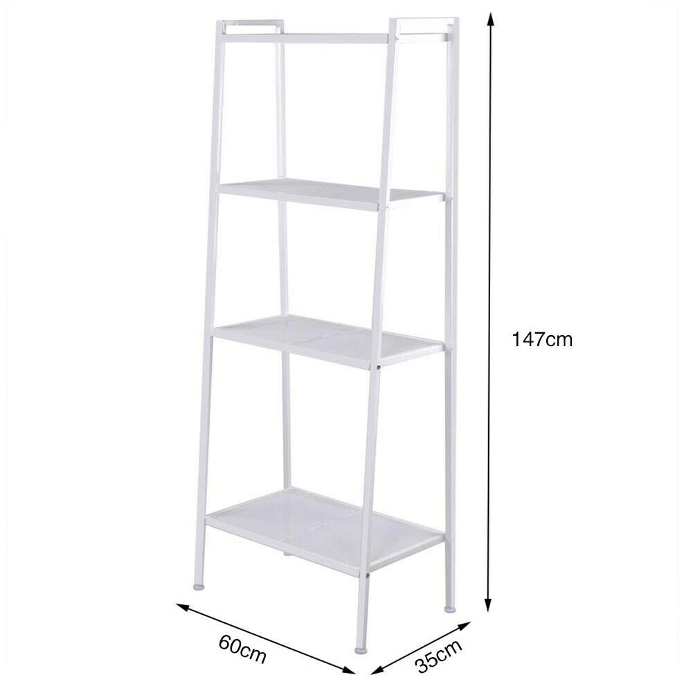 Ladder Shelf 4-Tier Bookshelf Storage Rack Room Office Bookcase Metal White Unit