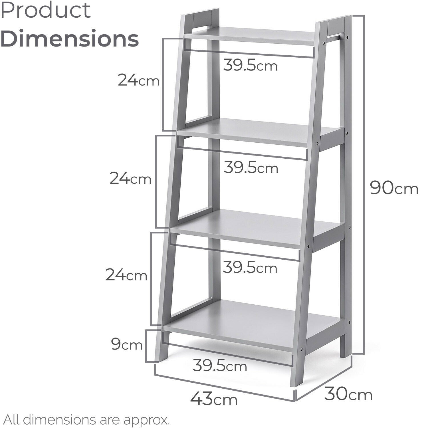 Ladder Shelf Unit 4 Tier Storage Display Stand Rack Home Bathroom Christow