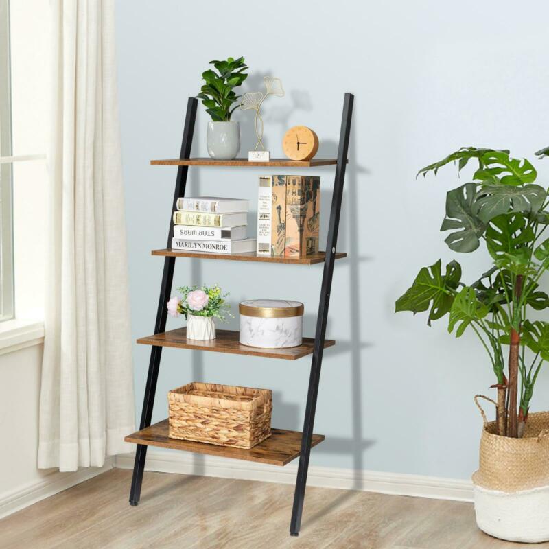 Ladder Shelving Unit 4 Tier Display Stand Book Shelf Wall Rack Storage