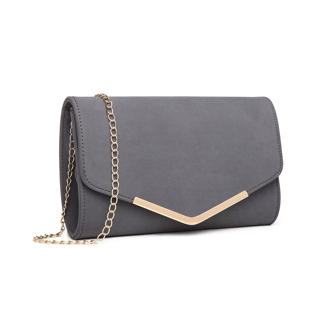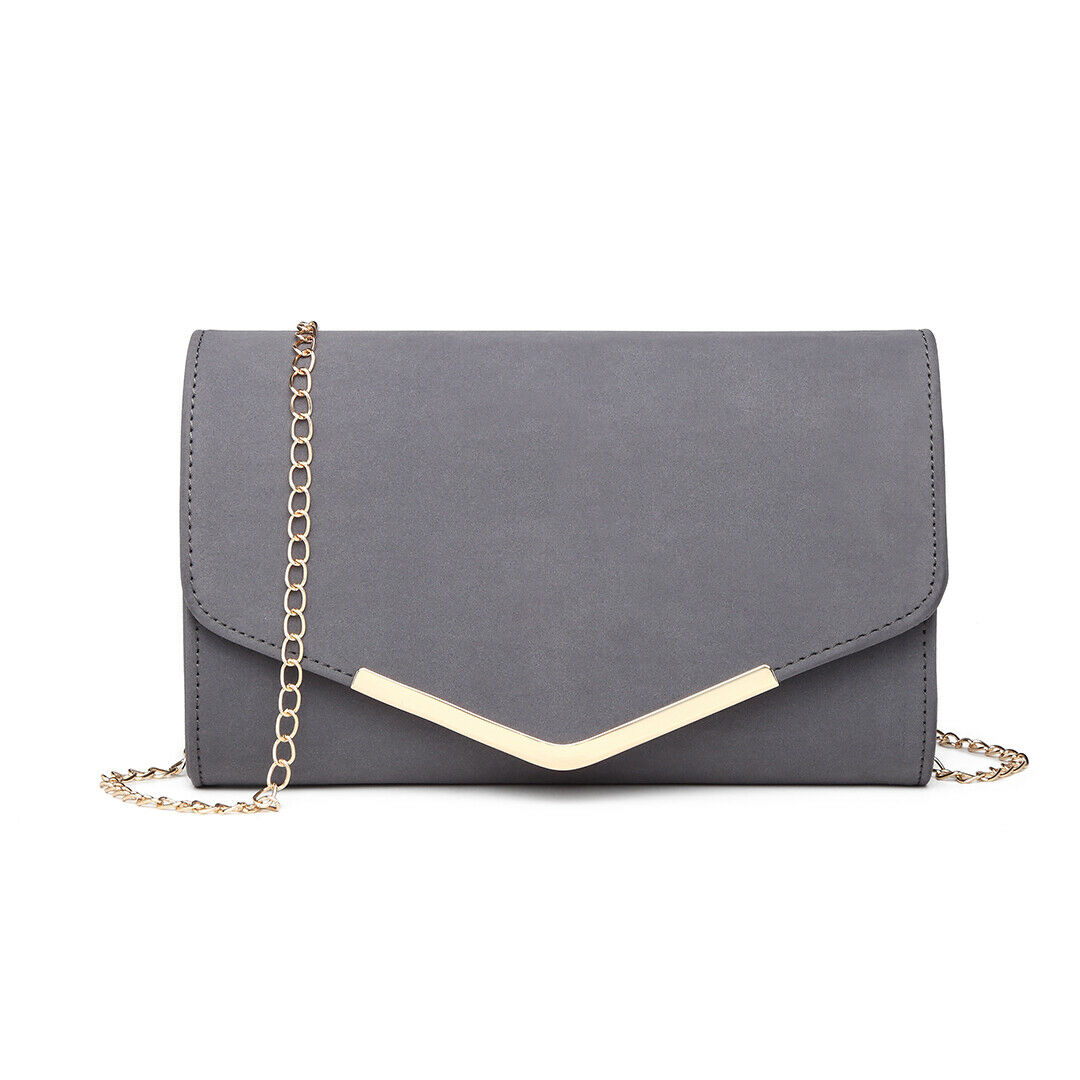 Ladies Chain Evening Envelope Clutch PU Leather Shoulder Bag Handbag