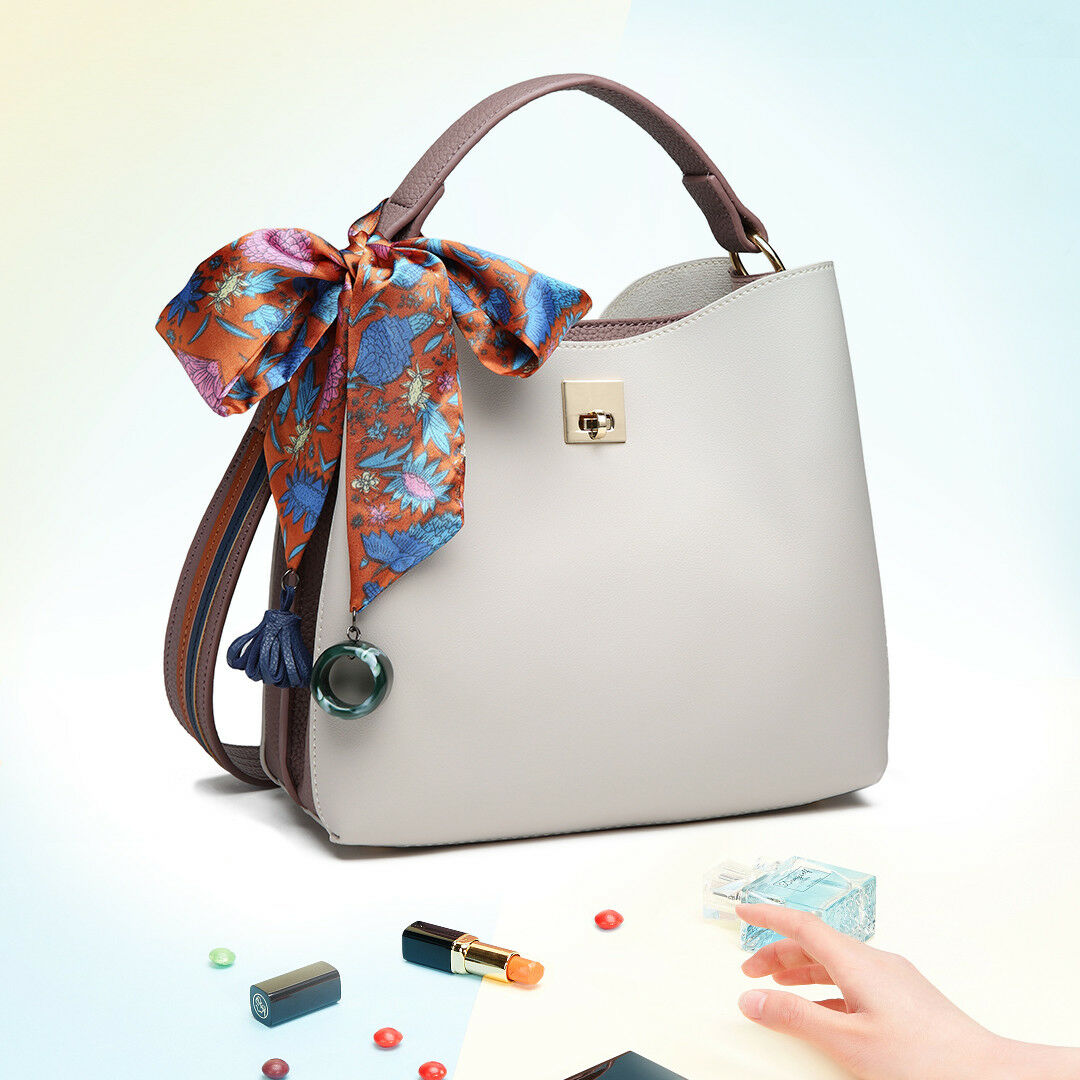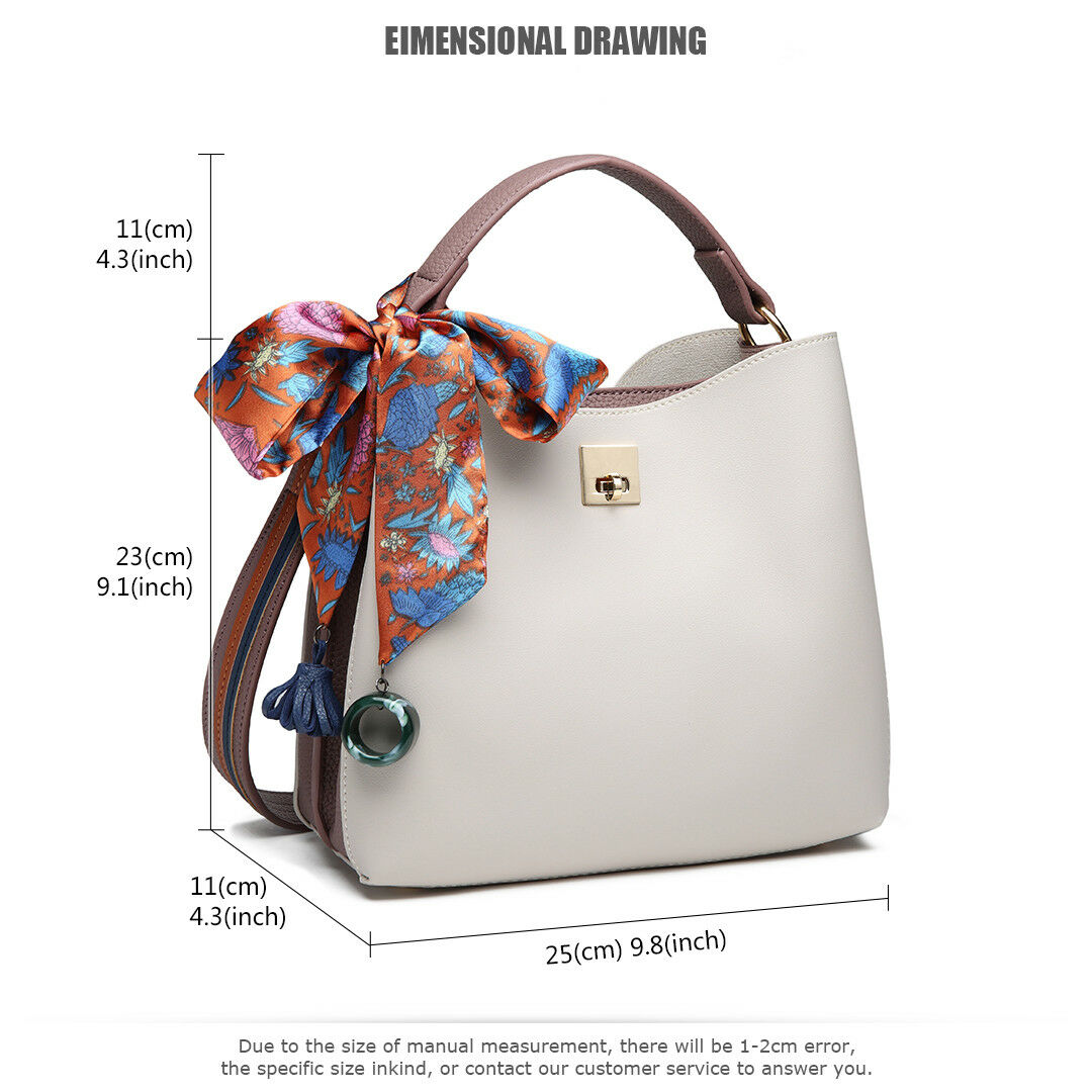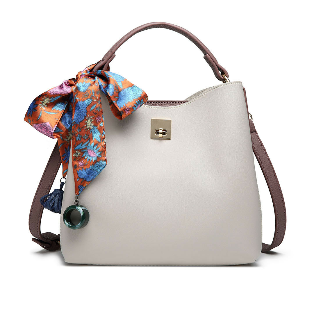 Ladies Designer Bucket Bag With Scarf Women Faux Leather Shoulder Handbag