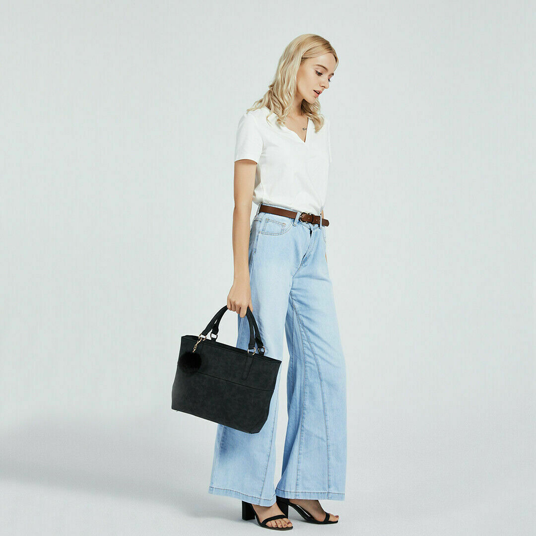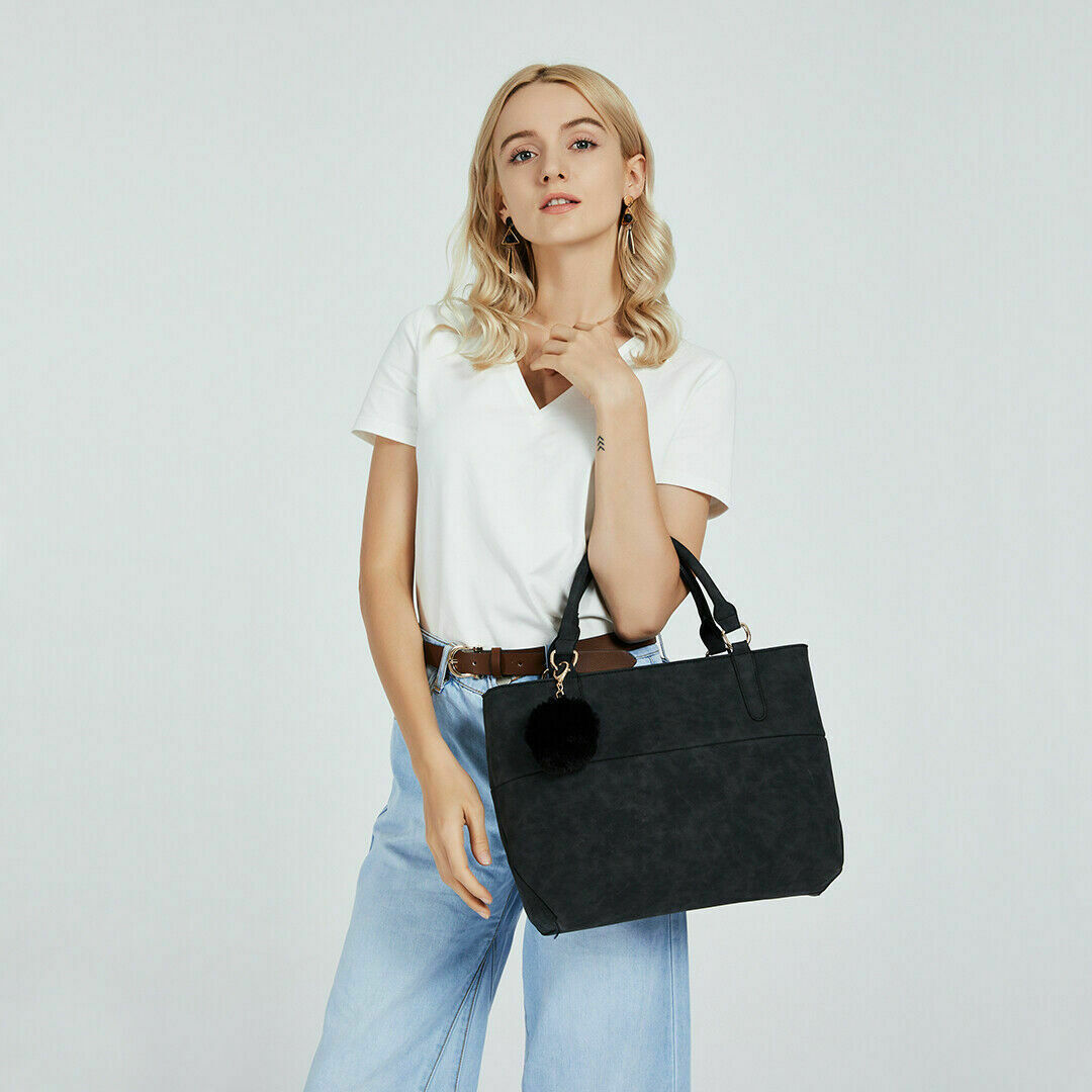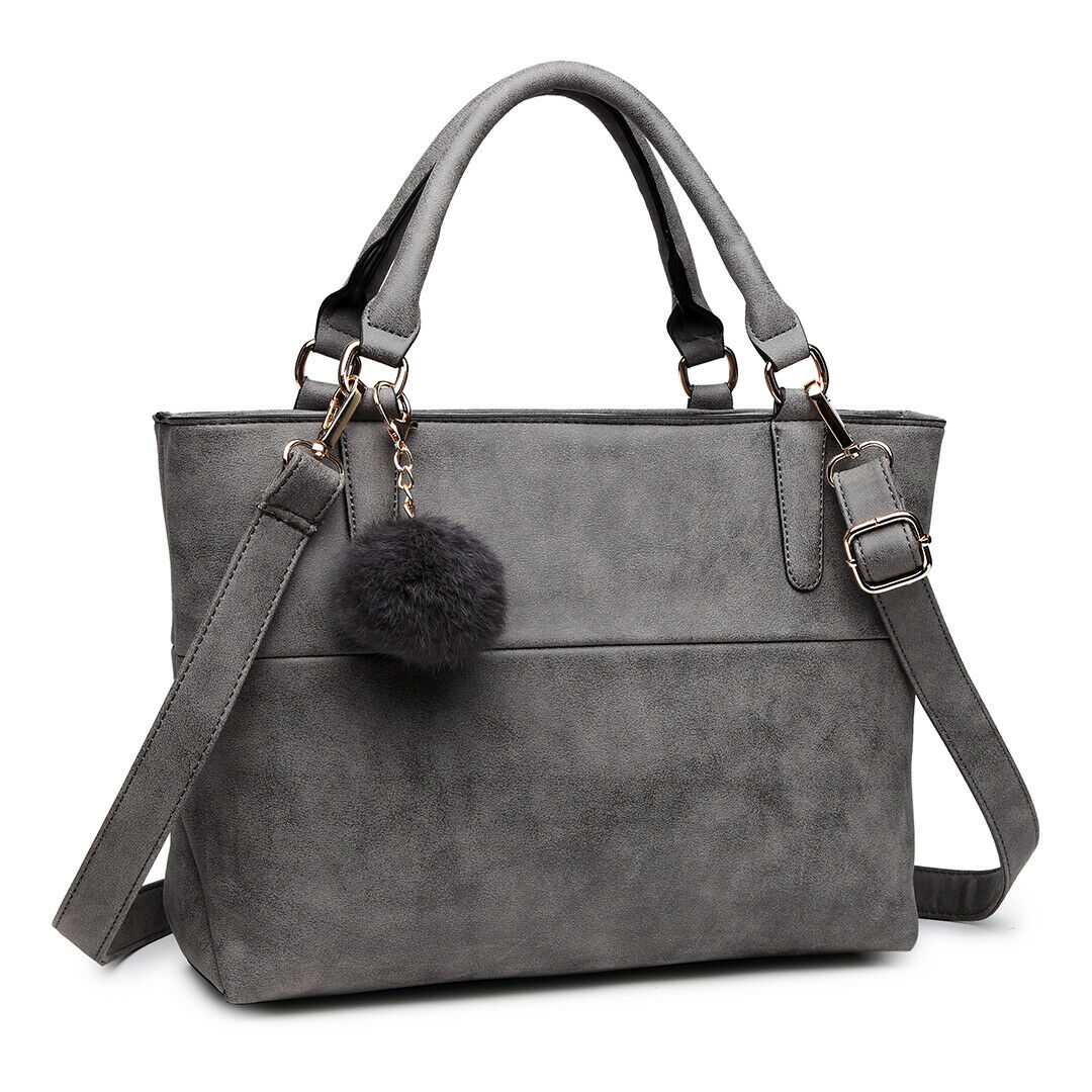 Ladies Girls Pompom Handbag PU Leather Square Satchel Shoulder Tote Bag