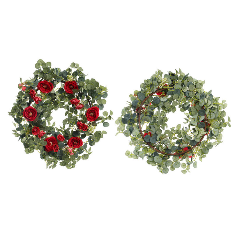 Large 18" Artificial Rose Wreath Door Spring Summer Garden Wreath Home Decor UK