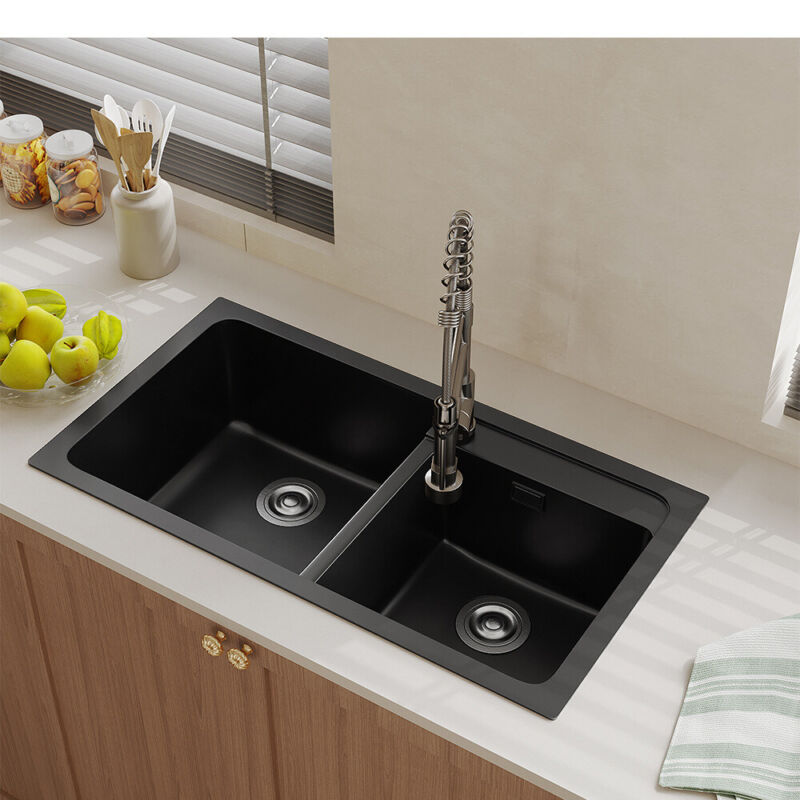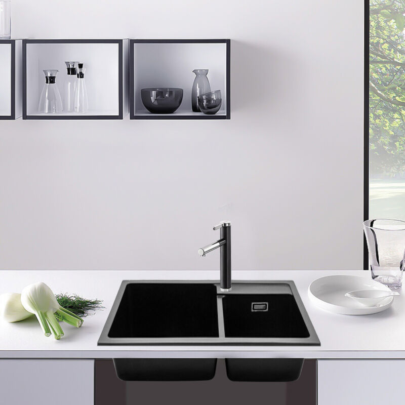 Large 2.0 Bowls Stone Resin Kitchen Sink Drainer & Waste Plug Kit Washing Basin