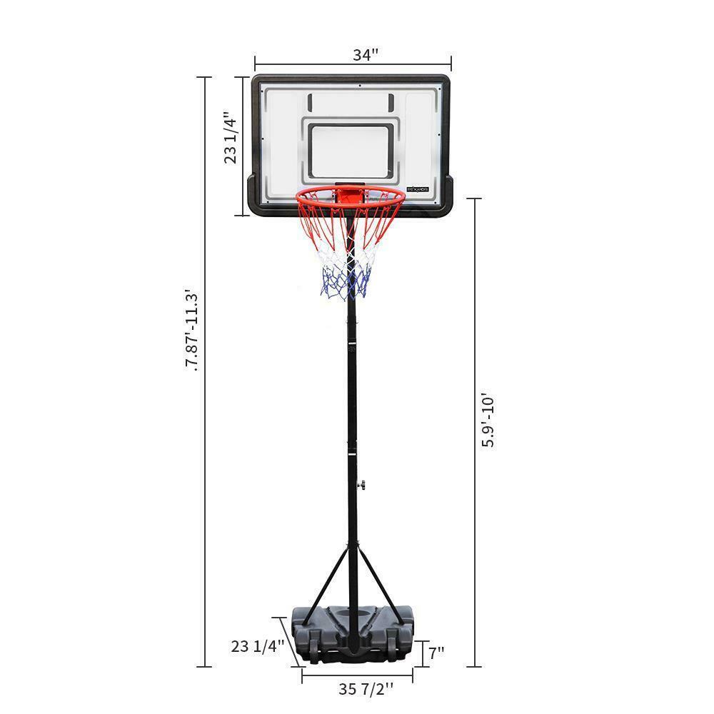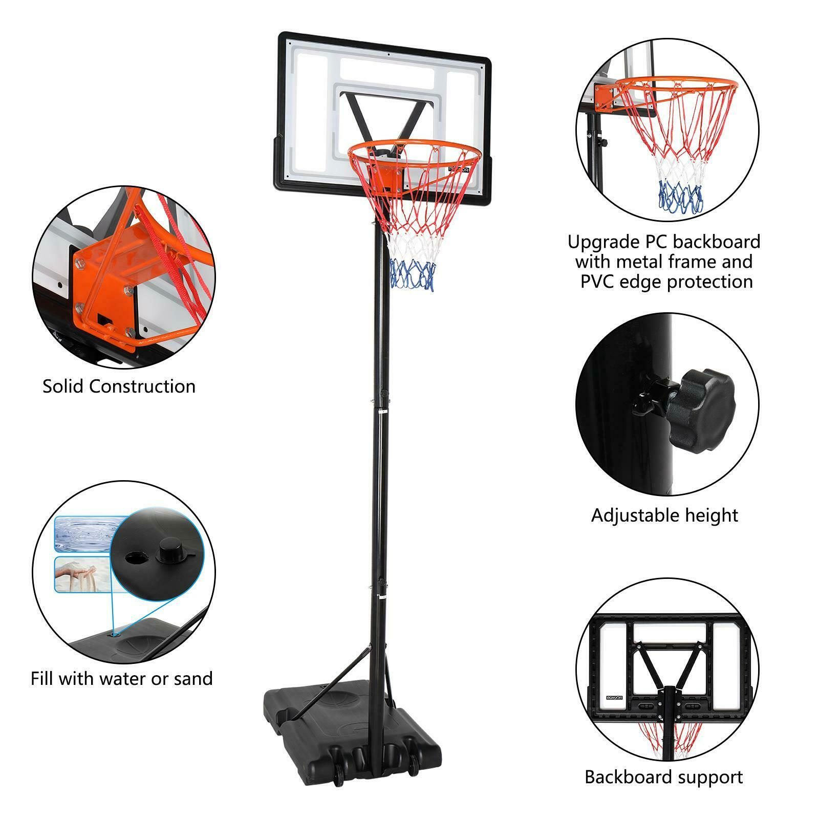 Large 2.1M-3M Height Basketball Hoop Adjustable Backboard Rim Portable Fitness