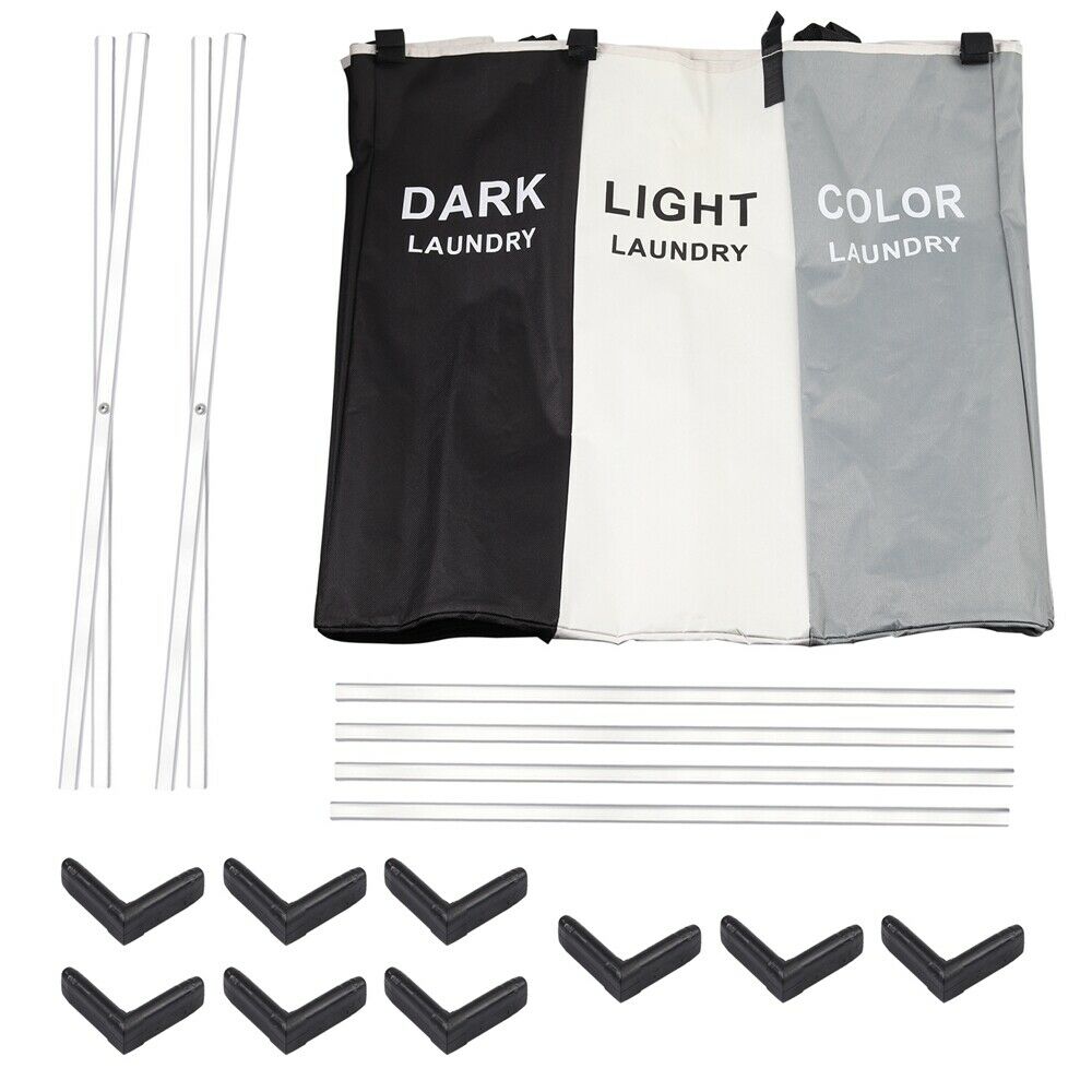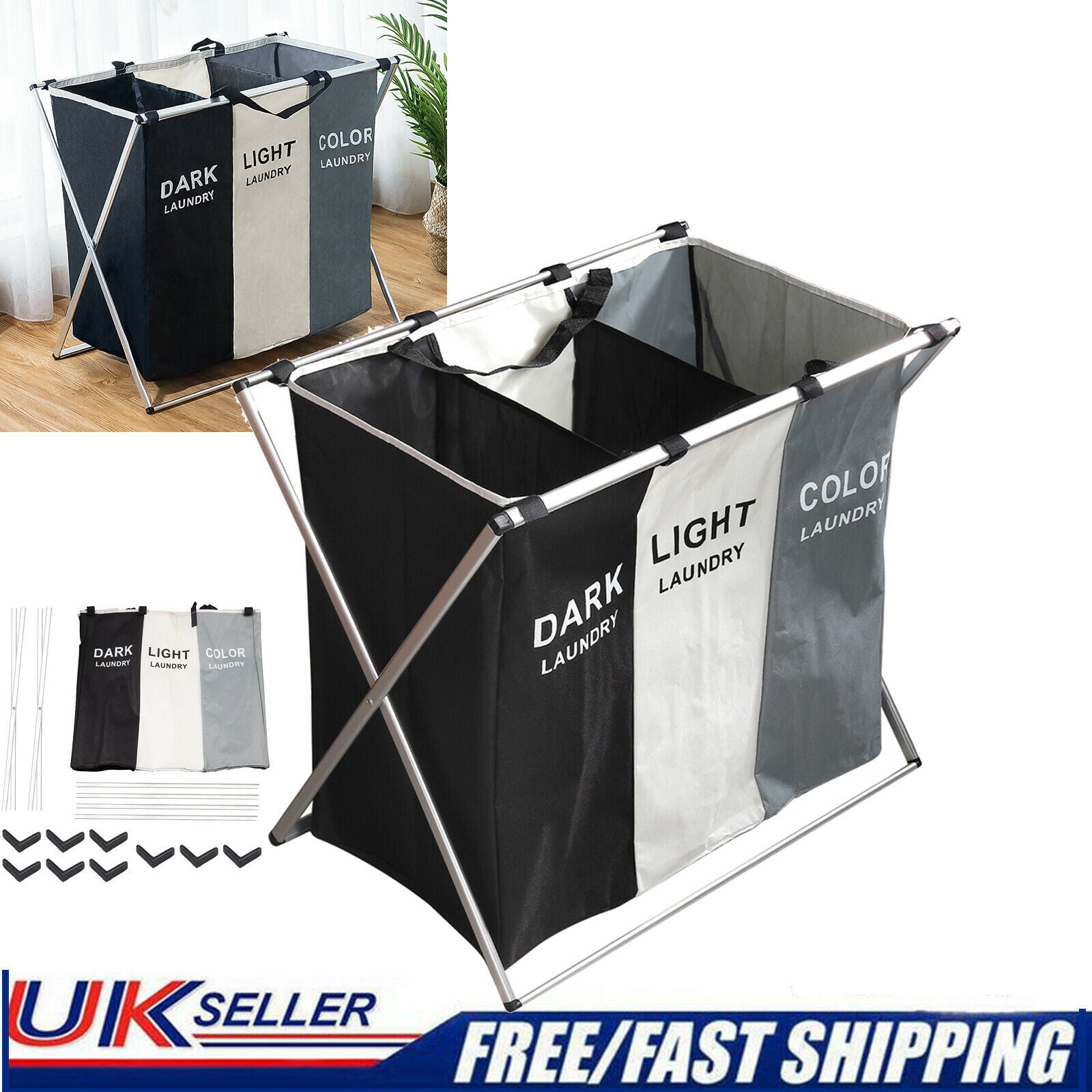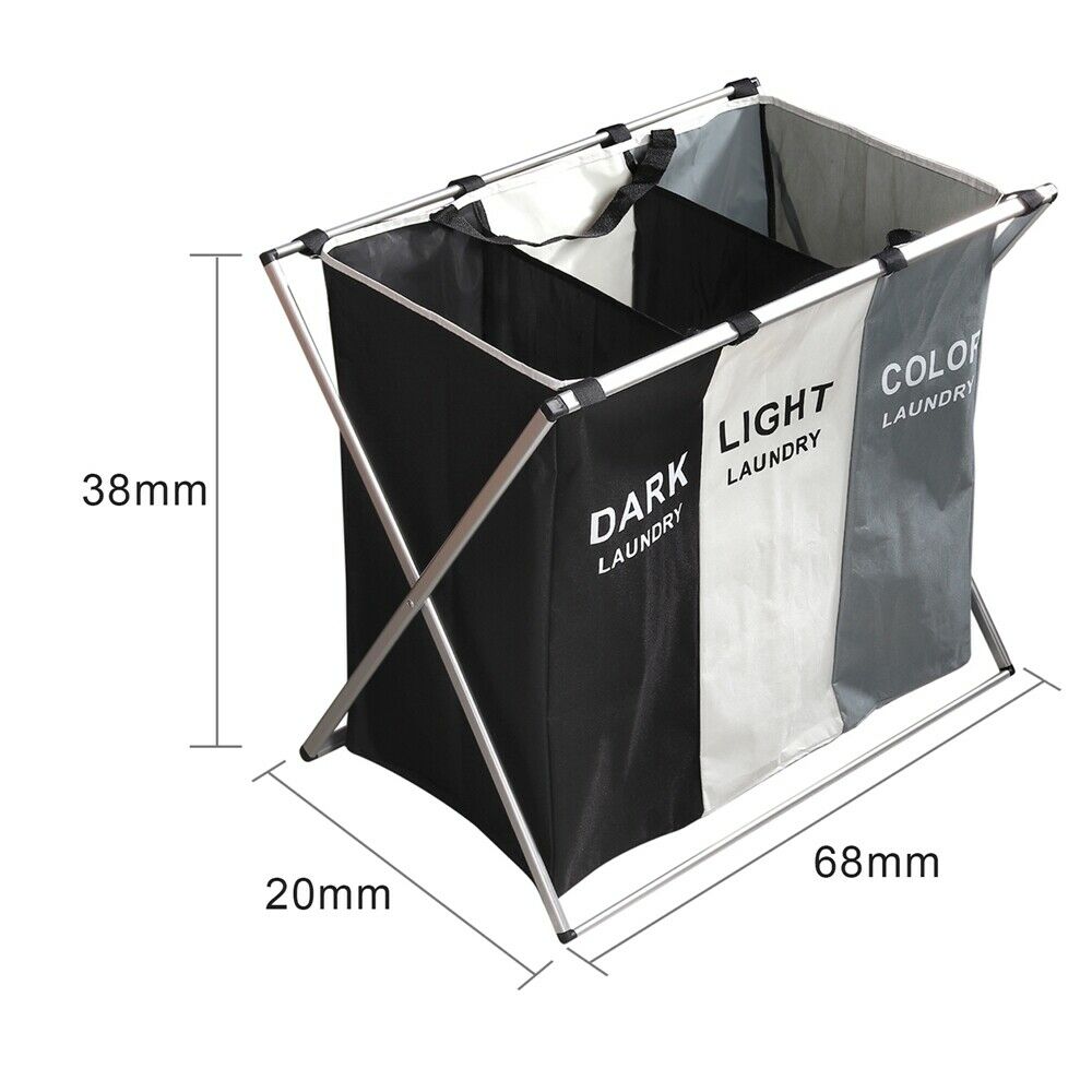 Large 3 Section Laundry Washing Clothes Bag Hamper Sorter Folding Organiser Rack