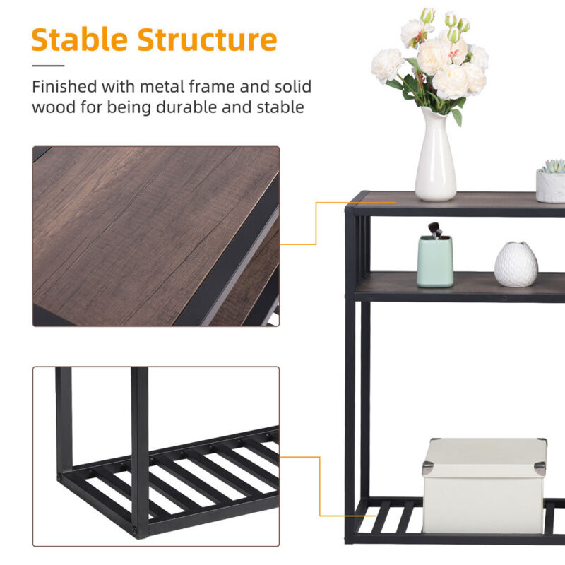 Large 3-Tier Console Table Office Furniture Desk Hallway Side Entry Hall Shelf